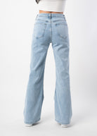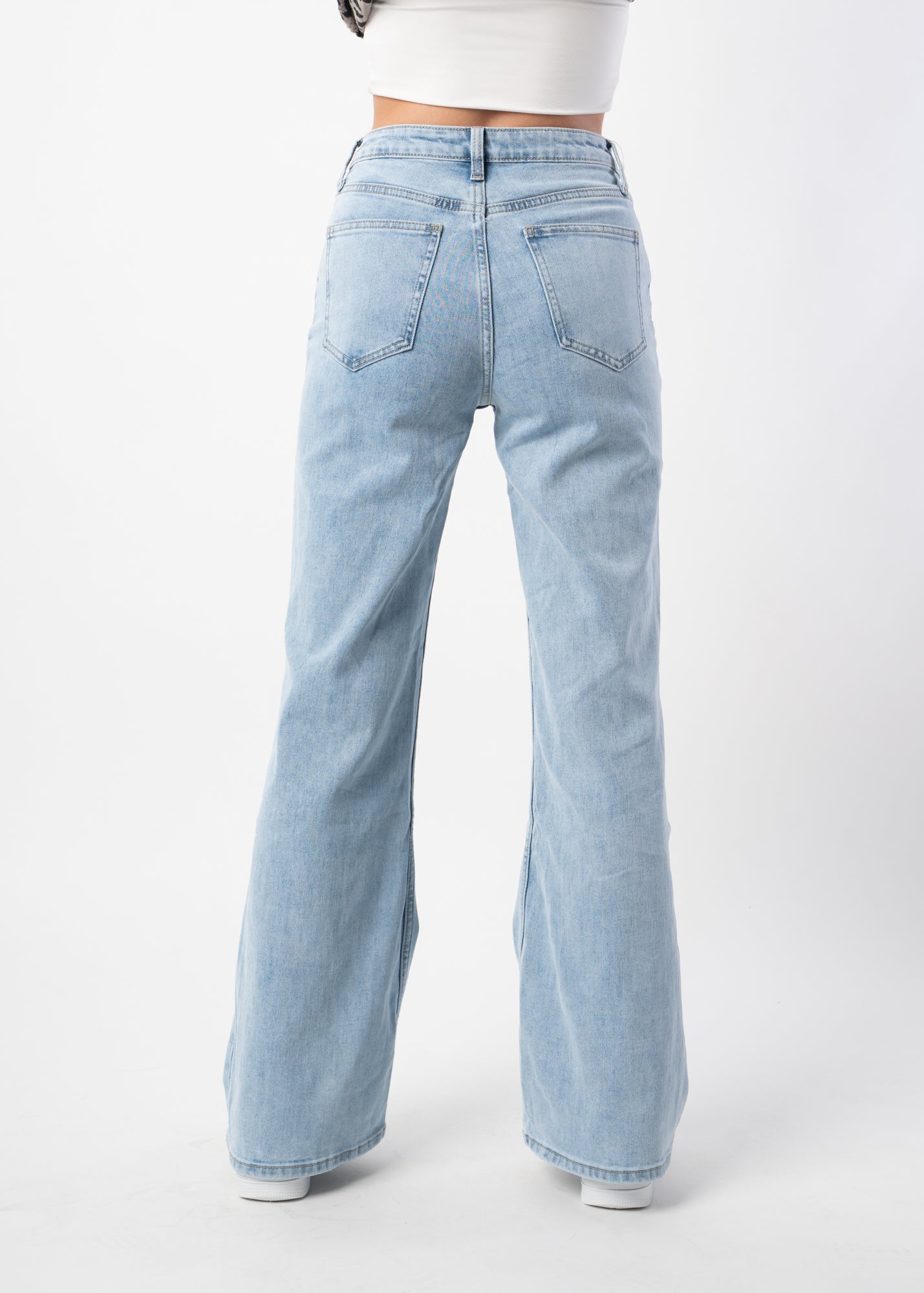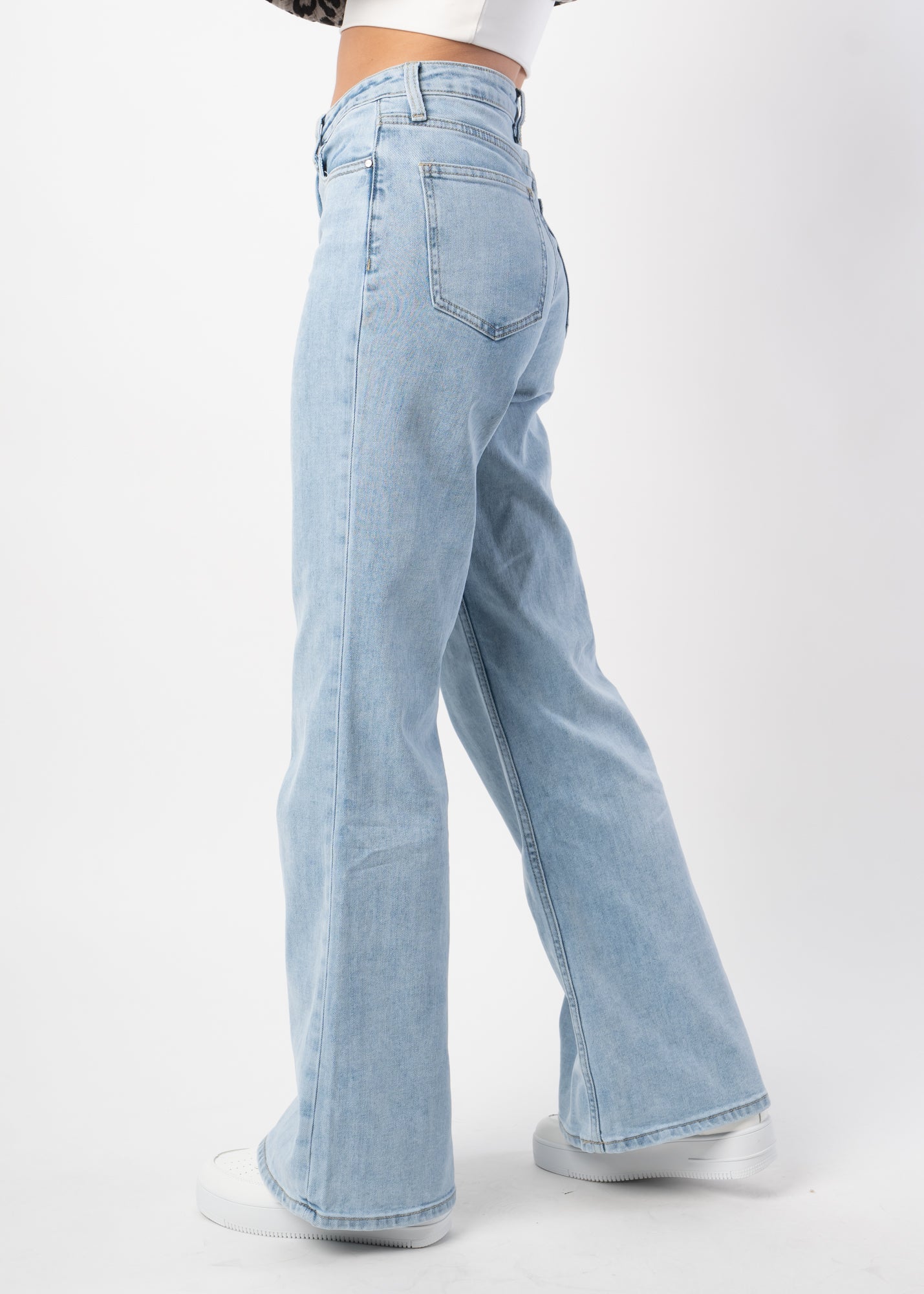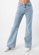 Diese Basic Flare Jeans in klassischer Länge und Gelbblau zaubert mit ihrem weit geschnittenen Bein eine wunderschöne Silhouette. Der geschlossene Saum sorgt für einen cleanen Look – ideal für lässige Outfits mit einem Hauch Retro.
