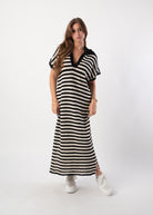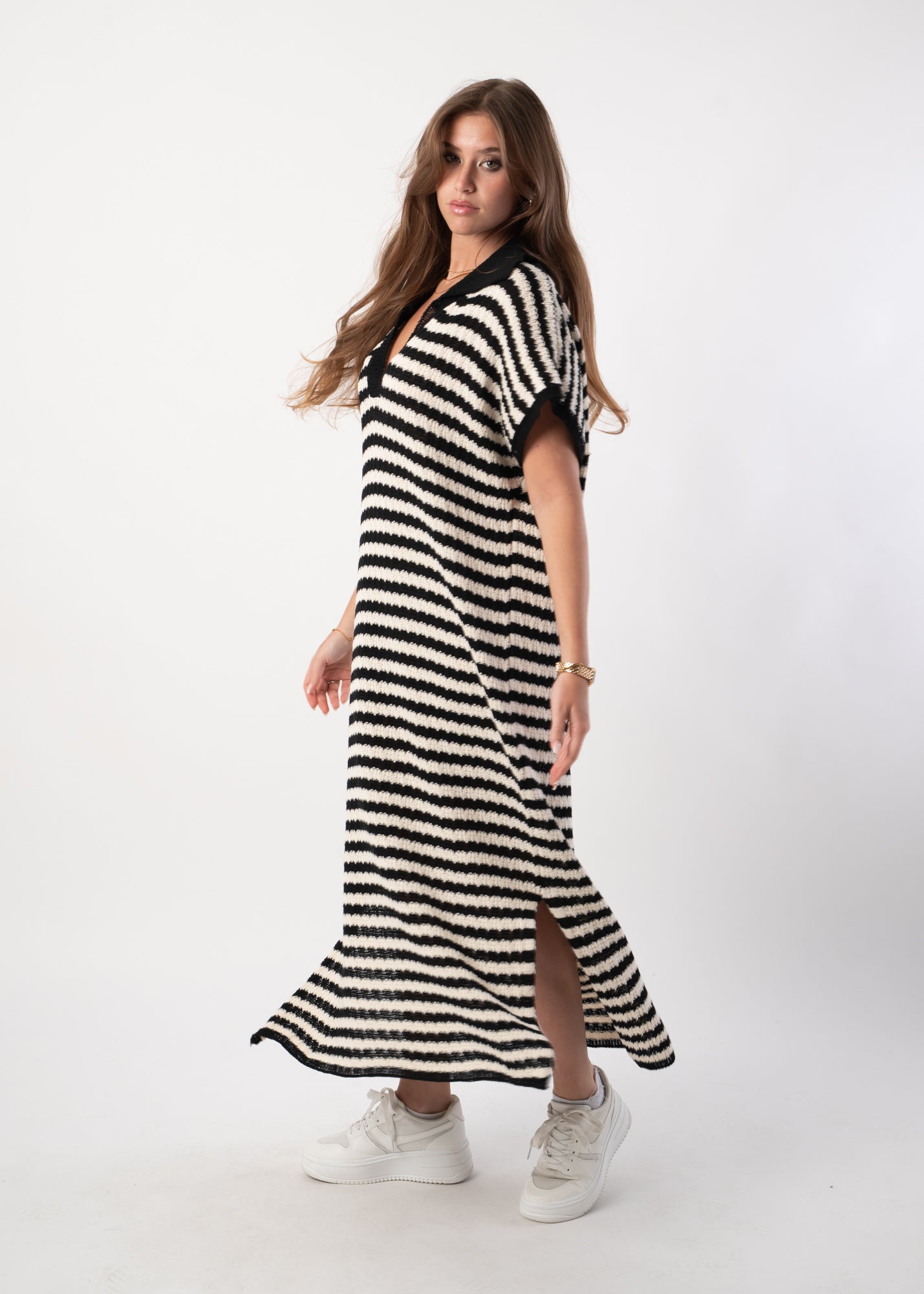 Dieses lange Häkel-T-Shirt-Kleid in Beige hat kurze Ärmel und einen klassischen Polokragen, was ihm eine lässig-elegante Note verleiht. Das luftige Muster und der gerade Schnitt machen es perfekt für sommerliche Tage – entspannt, leicht und stilvoll.