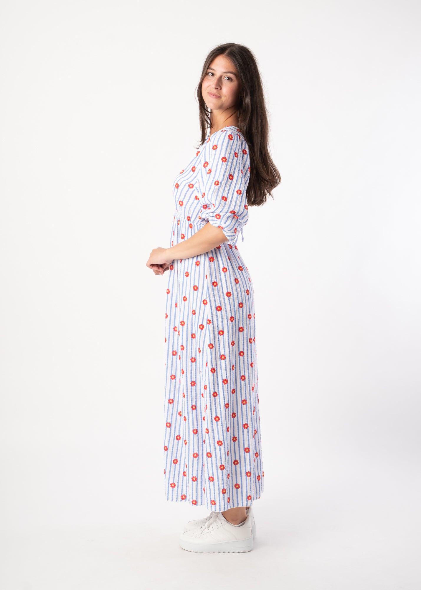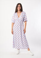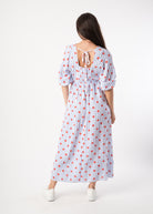Maxi Flower Baumwollkleid - Blau/Rot