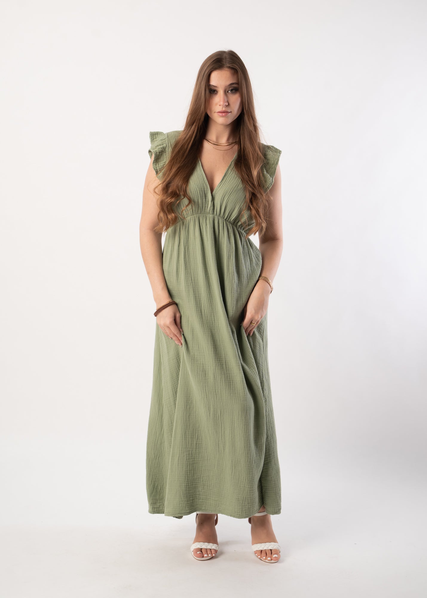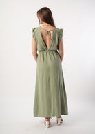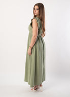 Rüschenkleid in Lang - Naturgrün
