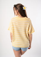 Dieses Strick-T-Shirt mit feinen Streifen und charakteristischem 90s-Polo-Kragen versprüht lässigen Retro-Charme. Der weiche Strick sorgt für ein angenehmes Tragegefühl, während der Schnitt deinen Look casual und trotzdem angezogen wirken lässt – perfekt für entspannte Sommertage mit Stil.