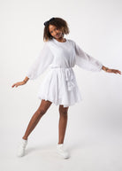 Federleicht und wunderbar feminin: Dieses Sommerkleid aus 100 % atmungsaktiver Baumwolle ist dein treuer Begleiter für warme Tage. Mit zartem Flatter-Look, langen Puffärmeln und einem geflochtenen Taillengürtel zaubert es im Handumdrehen eine schmeichelhafte Silhouette.