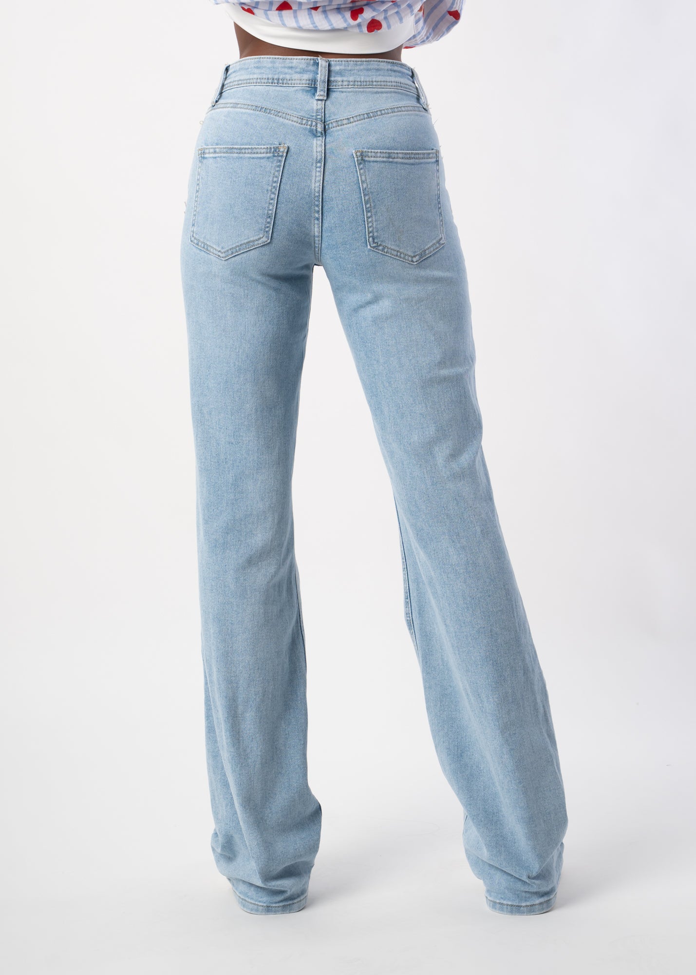 Flared Mid Waist Jeans in Extra Lang - Hellblau