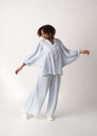 Flower Musselin Hose - Babyblau/Rosa