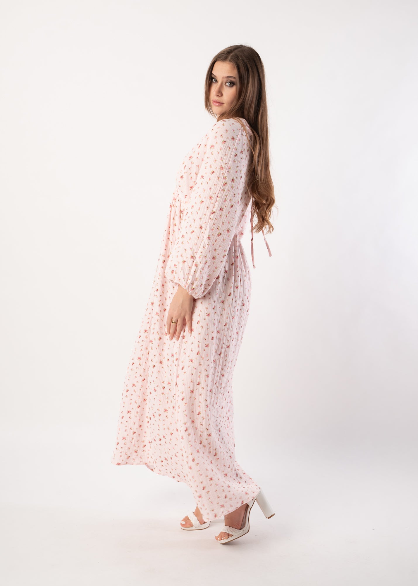 Dieses lange Flower Musselinkleid in Rosa vereint luftige Leichtigkeit mit einem zarten Blumenprint für deinen perfekten Sommermoment.