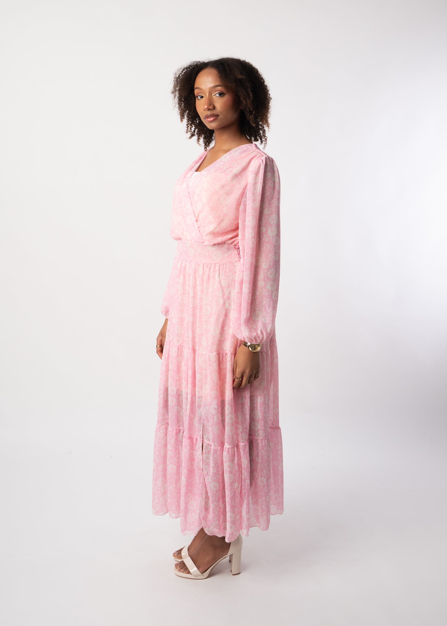Langes Kleid mit Floralem Muster - Rosa