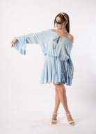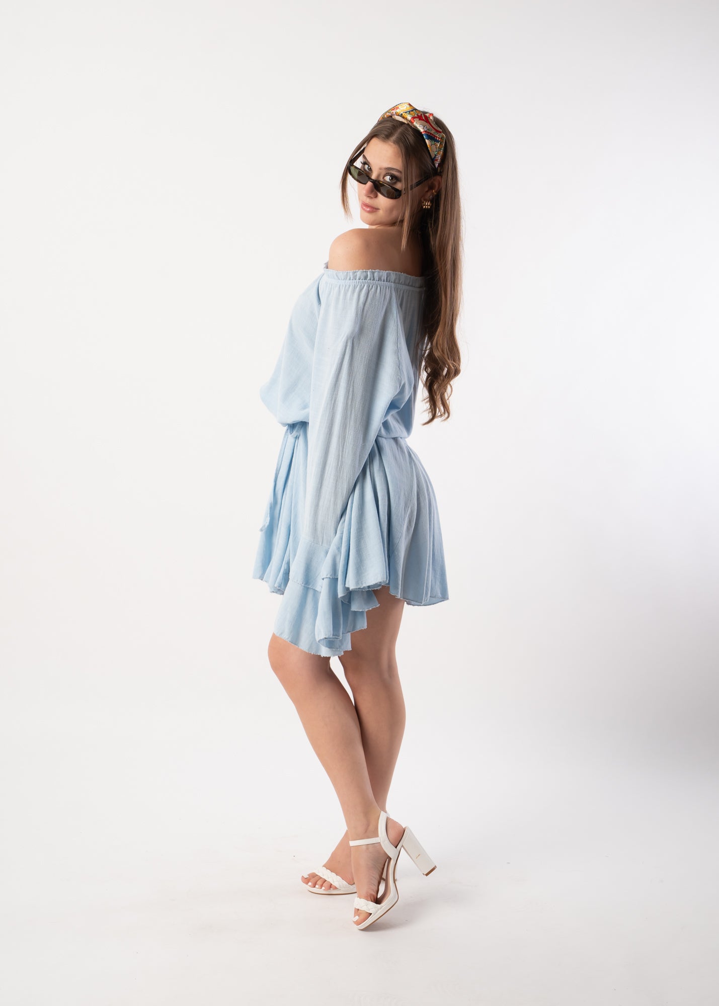 Oversize Leinenkleid mit langen Ärmeln - Blau