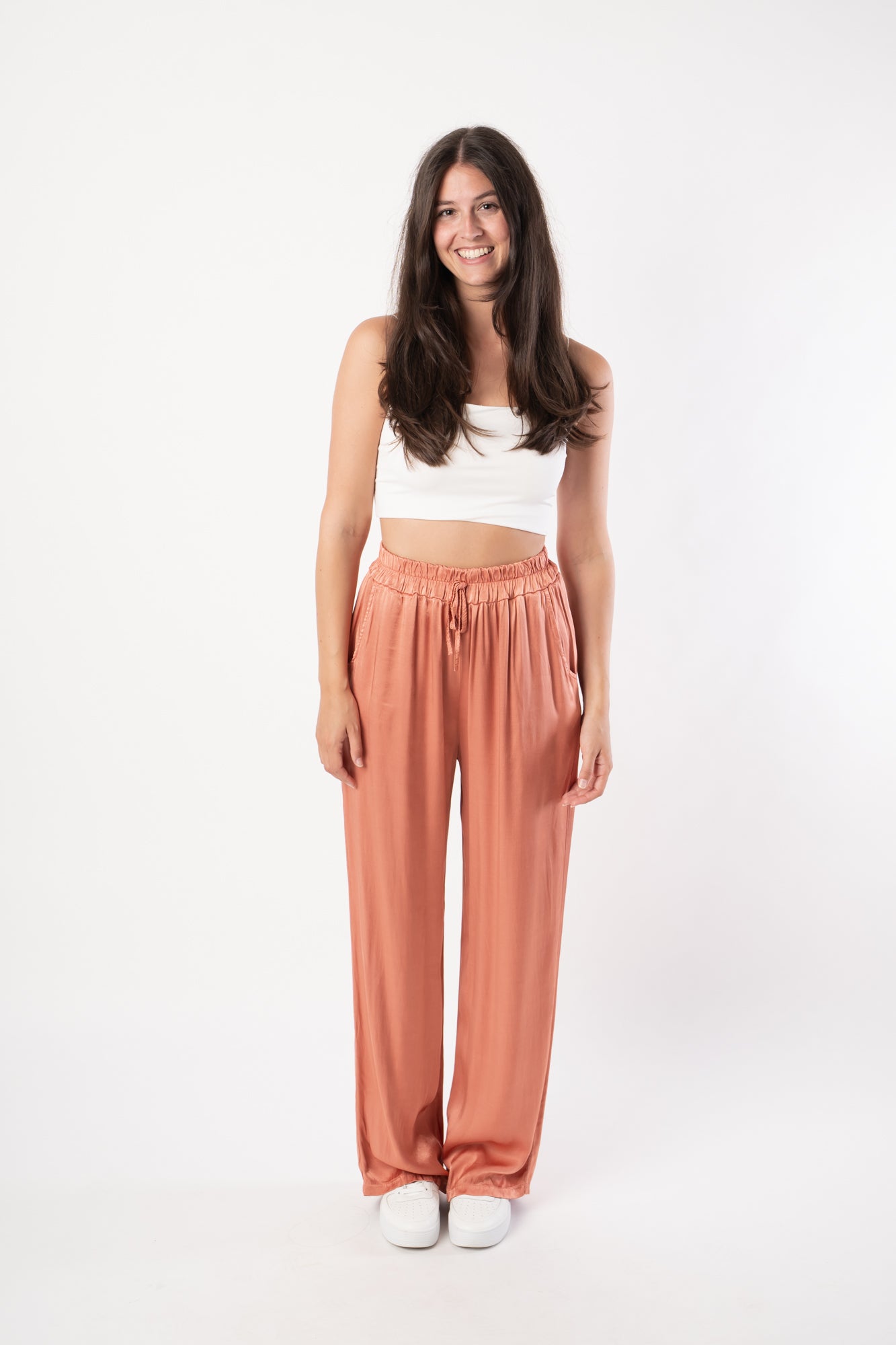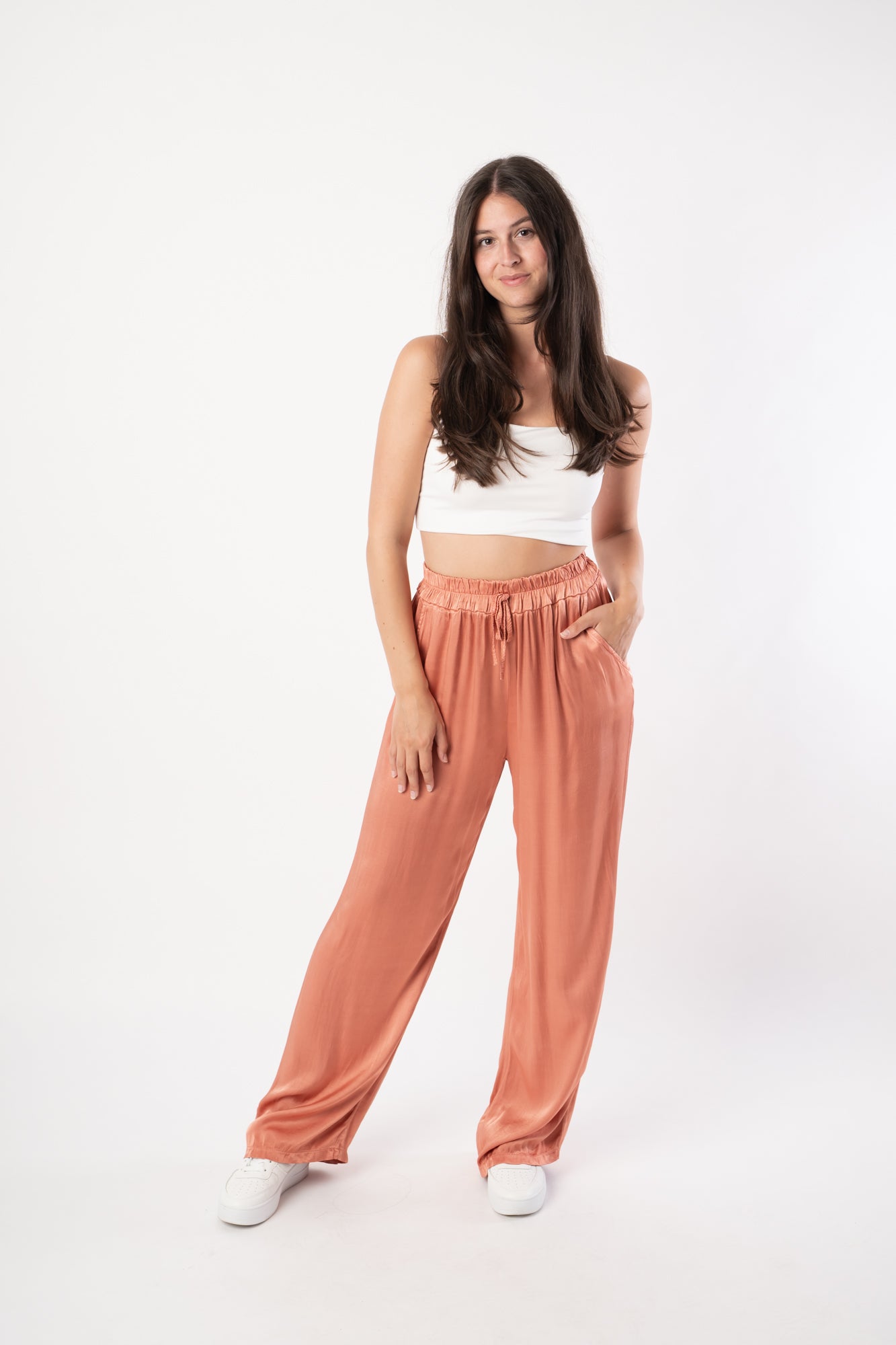 Luftig, edel und sommerlich – diese Hose im silky Satin-Look verleiht jedem Outfit einen Hauch Eleganz. Der leichte Glanz macht sie zum perfekten Kombipartner für entspannte Days und schicke Abende.