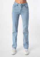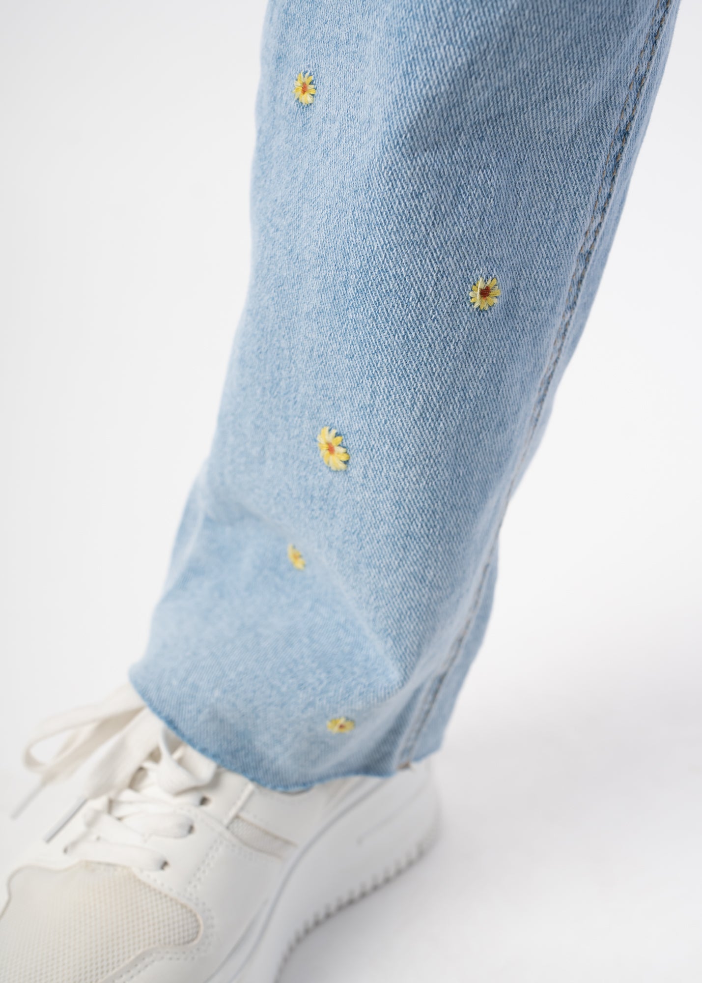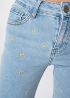 Mid Waist Jeans mit Sonnenblumen - Hellblau