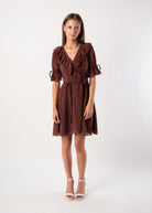 Dieses Wickelkleid mit Volantdetails bringt romantische Eleganz in deinen Sommer – mit seinem leichten Stoff, dem schmeichelhaften Schnitt und den halblangen Ärmeln wirkt es gleichzeitig feminin, schick und mühelos stilvoll.