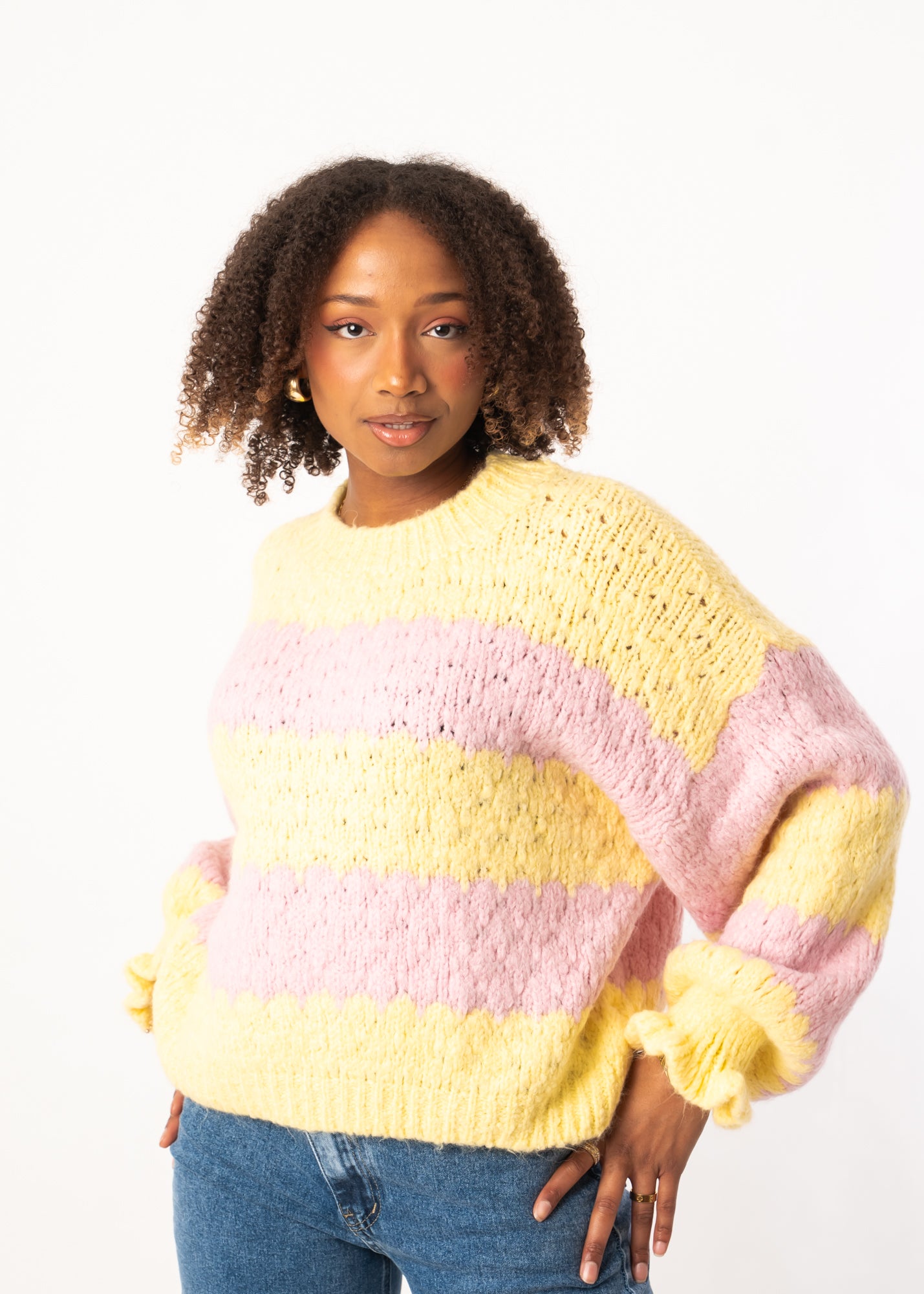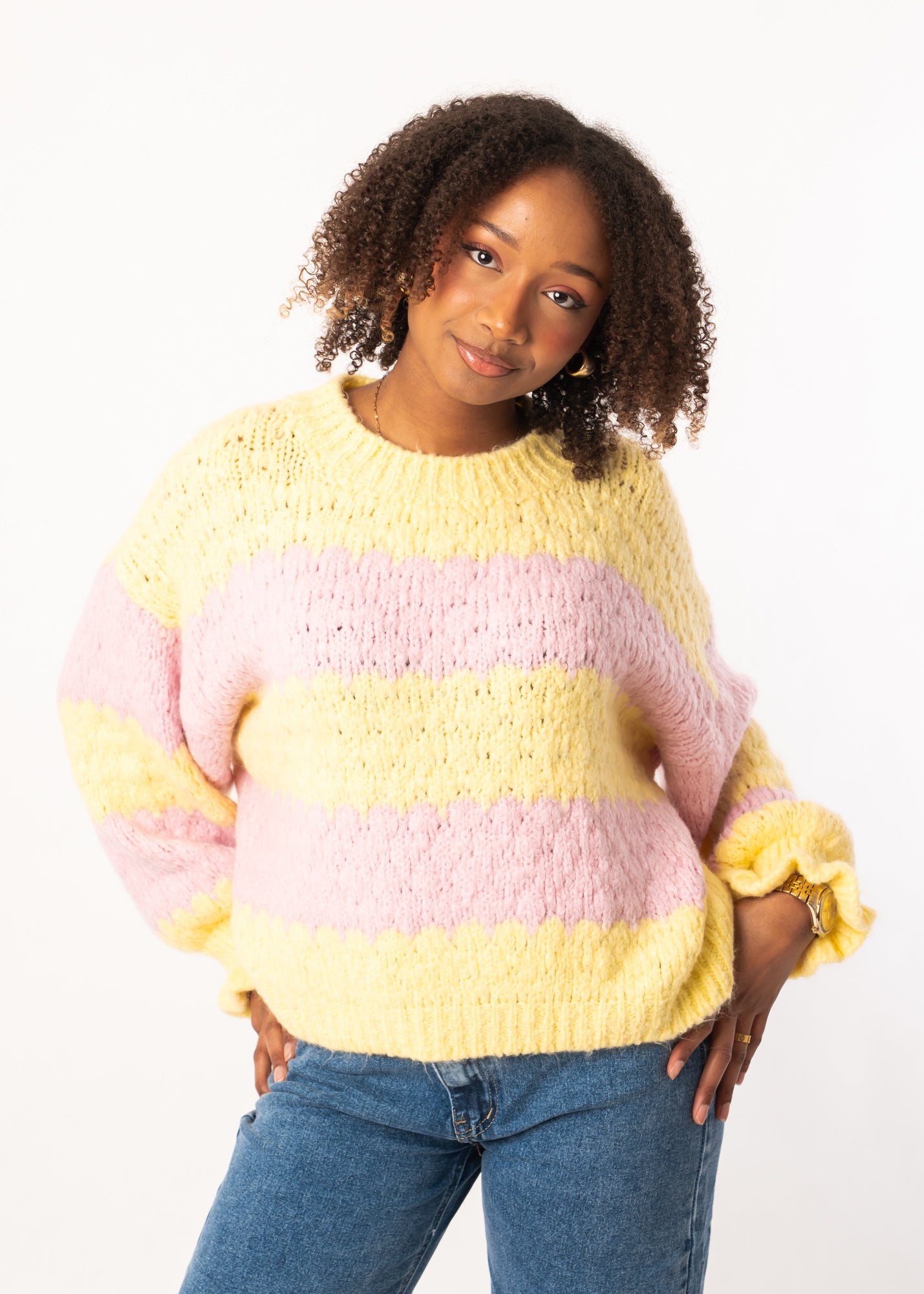Cloudy Strickpullover - Gelb/Rosa