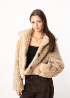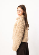 Weich, warm und mit einzigartiger Struktur – diese Jacke sorgt sofort für einen cozy Look. Die goldfarbenen Verschlüsse setzen elegante Akzente, während das flauschige Material dich angenehm warm hält. Perfekt für stylische Wintertage und moderne Alltagsmomente.