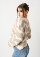 Kurze Crochet Strickjacke - Taupe/Beige