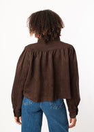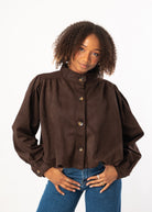 Ein moderner Klassiker mit elegantem Twist. Die weiche Velours-Optik, die ballonförmigen Ärmel und die markanten Knöpfe verleihen dieser Jacke einen edlen, aber lässigen Charakter. Ideal für Übergangstage und perfekt kombinierbar zu Jeans oder Kleid.