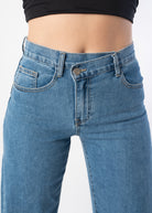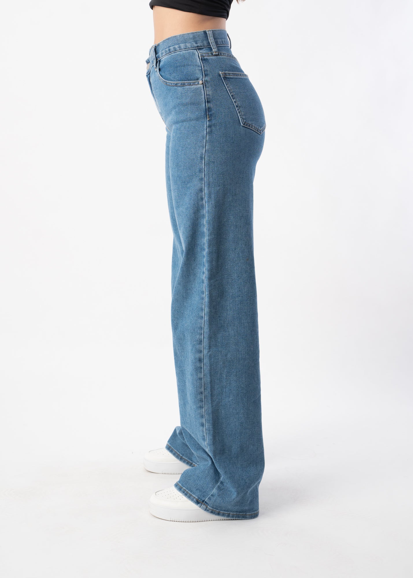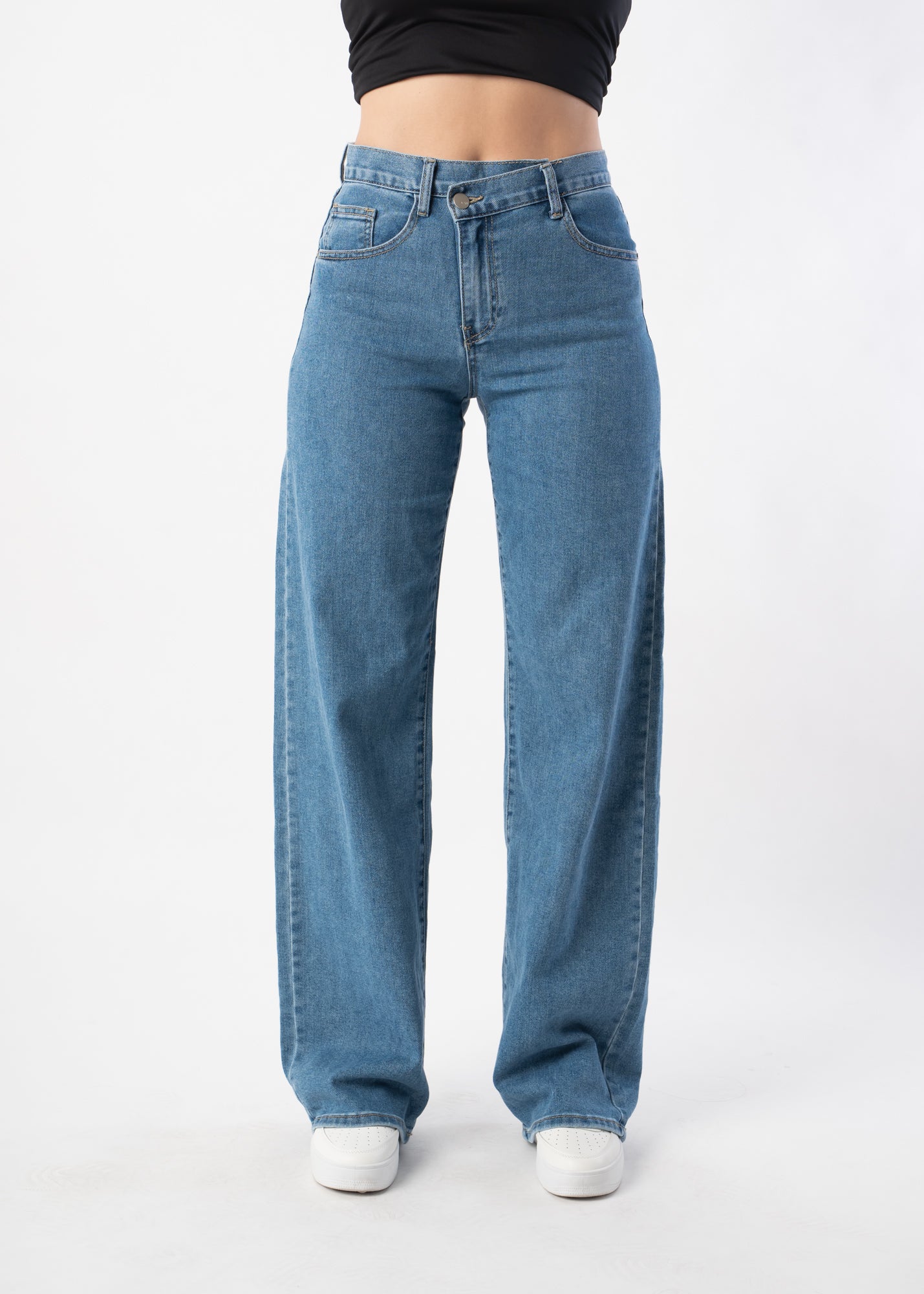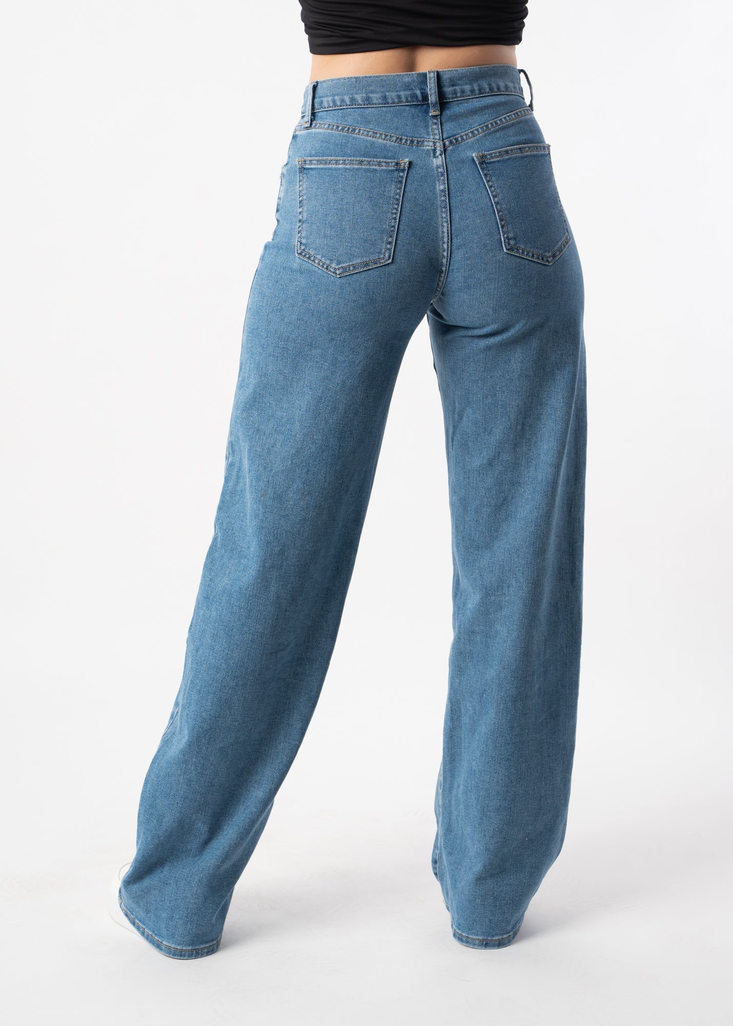 Lange Asymmetric Barrel Jeans - Mittelblau