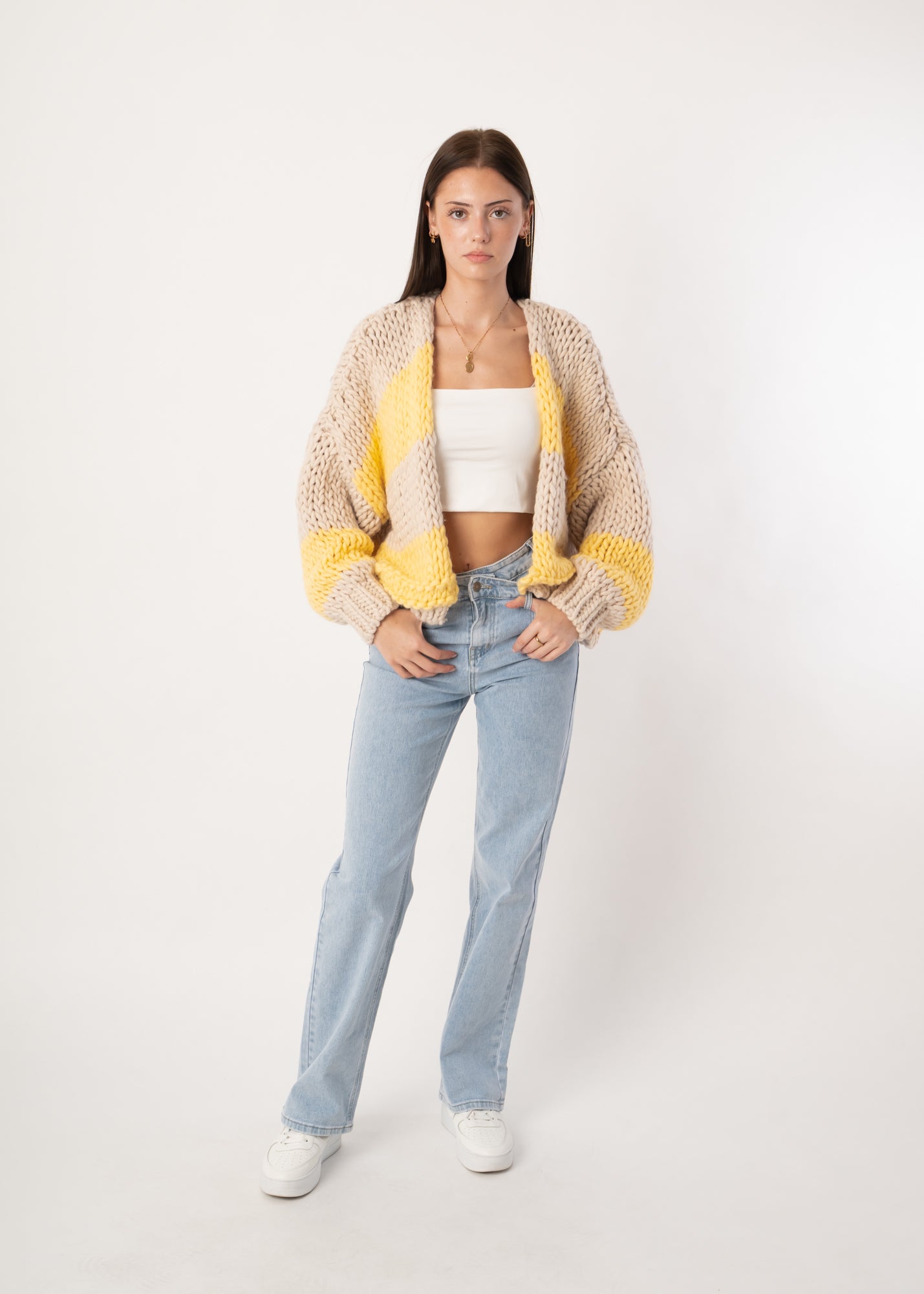 Chunky Knit Cardigan - Beige/Gelb