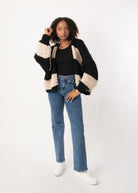 Dieser grob gestrickte Cardigan bringt sofort gute Laune in deinen Alltag. Mit seinem kuscheligen Oversize-Fit und den markanten Farbblöcken ist er nicht nur super gemütlich, sondern auch ein echtes Statement-Piece. Perfekt zum Überwerfen an kühleren Tagen und einfach zu kombinieren.