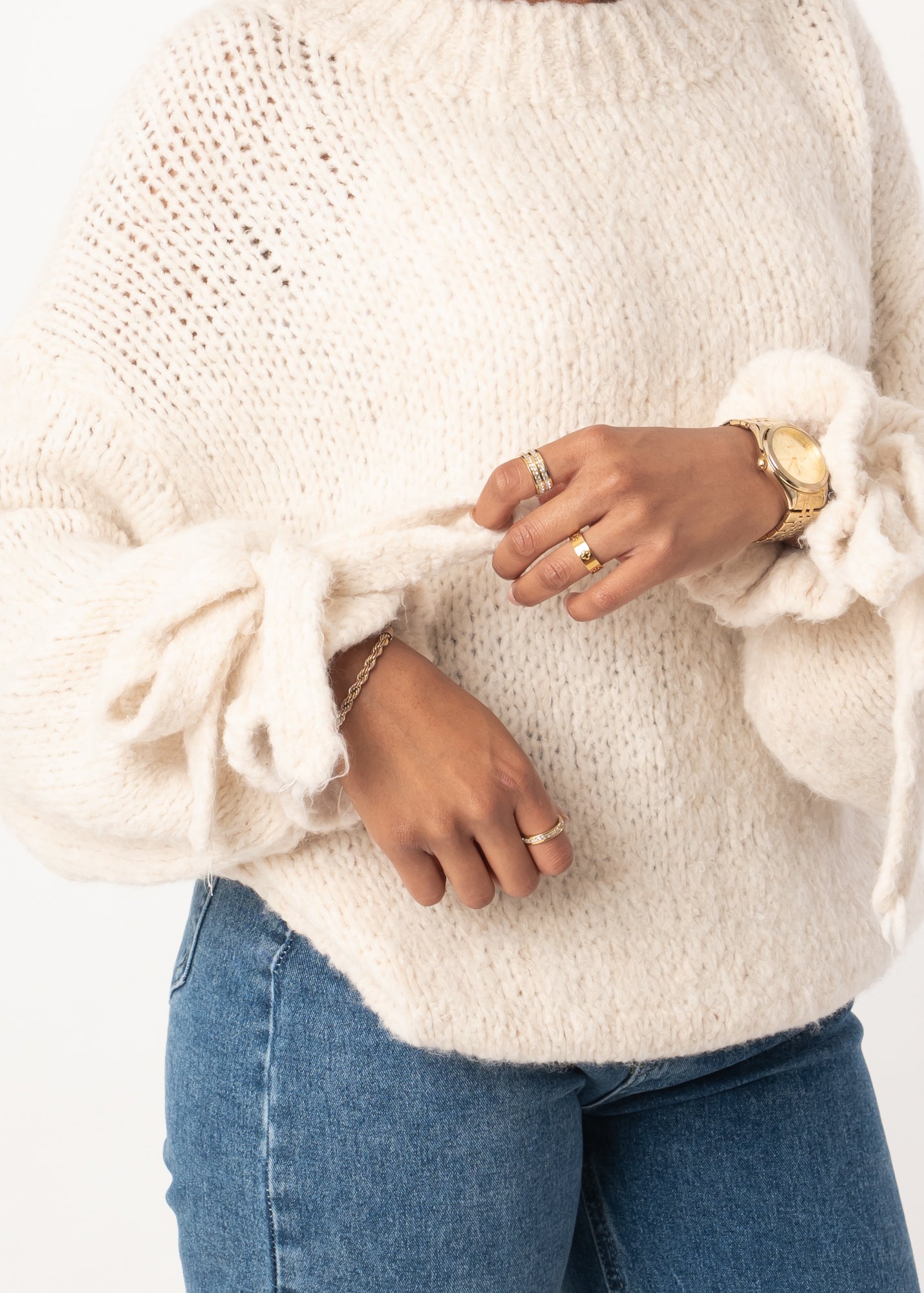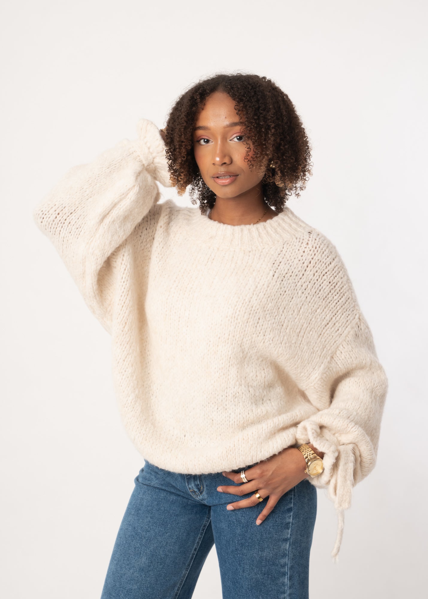 Oversize-Sweater mit weiten Ärmeln und verspielten Schleifen zum Binden, ein echtes Statement-Piece. Genauso weich wie all unsere Knit-Pullover!