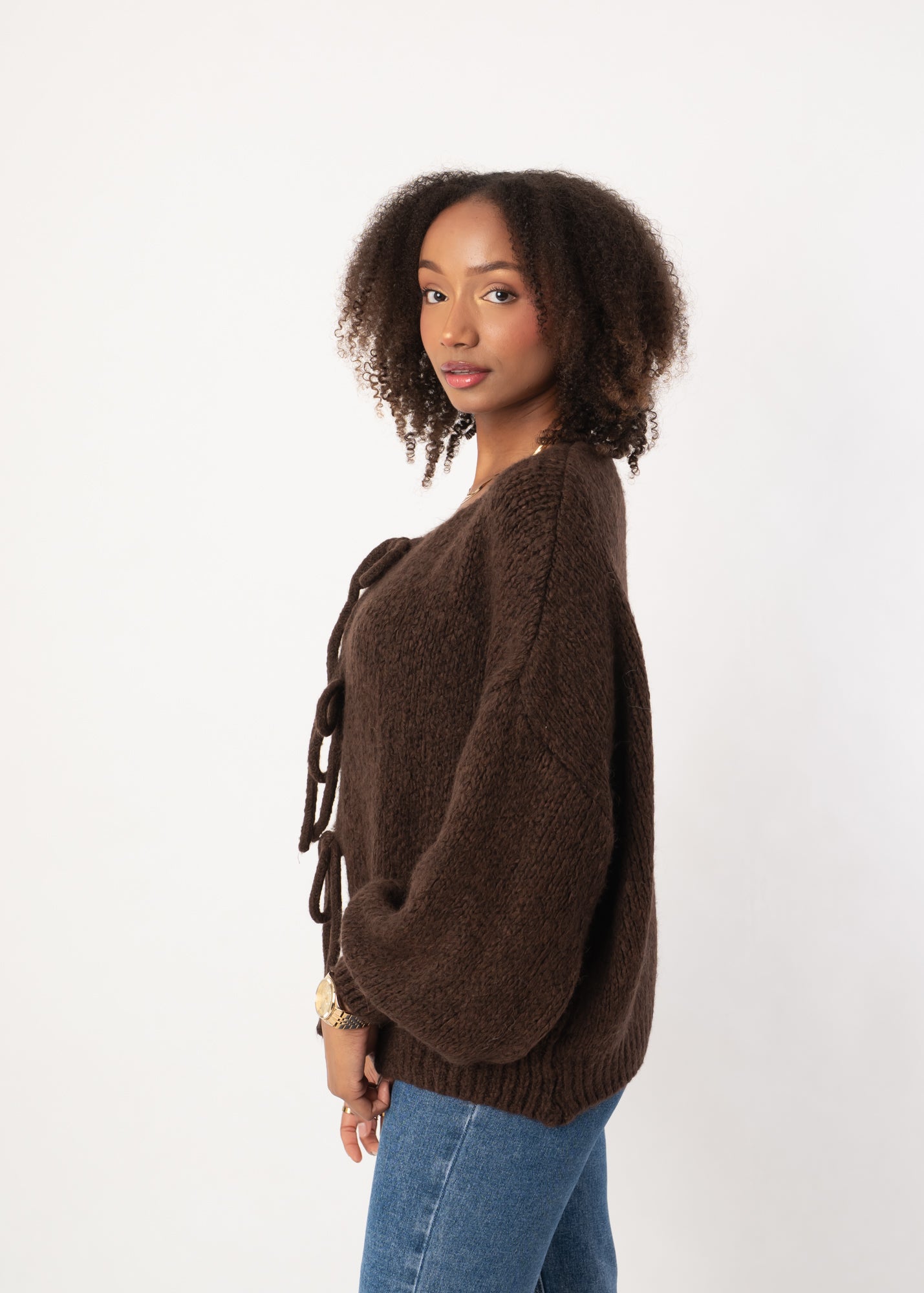 Soft Bow Cardigan - Dunkelbraun