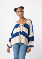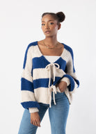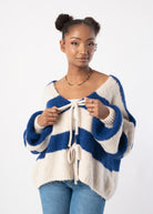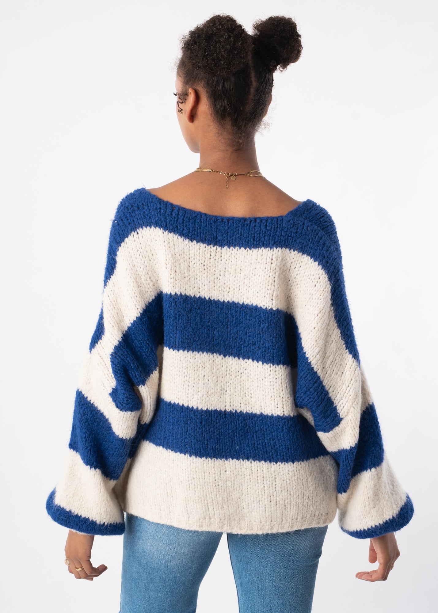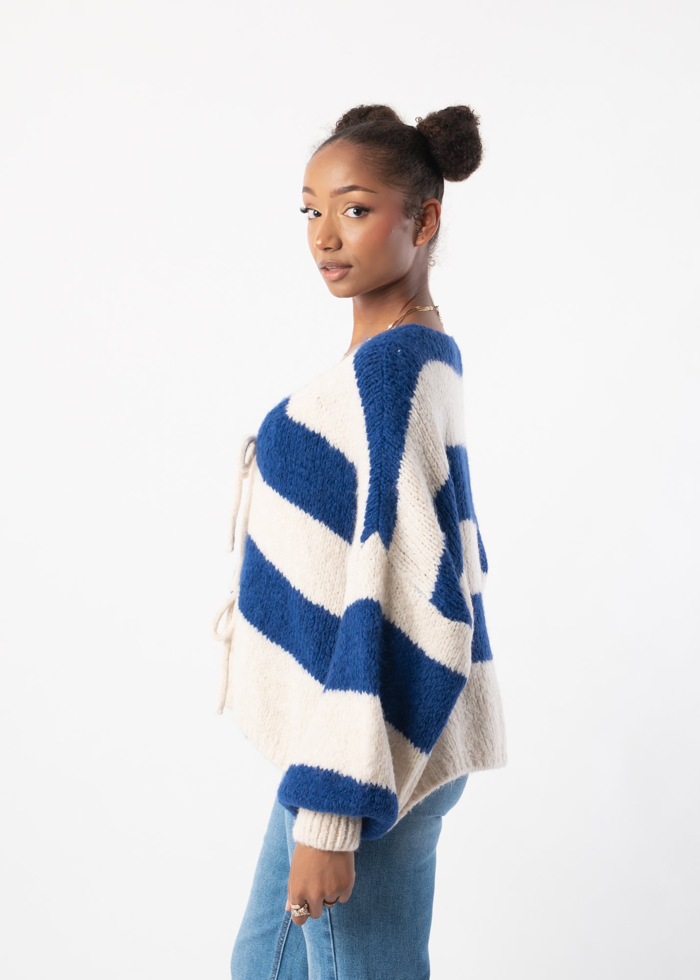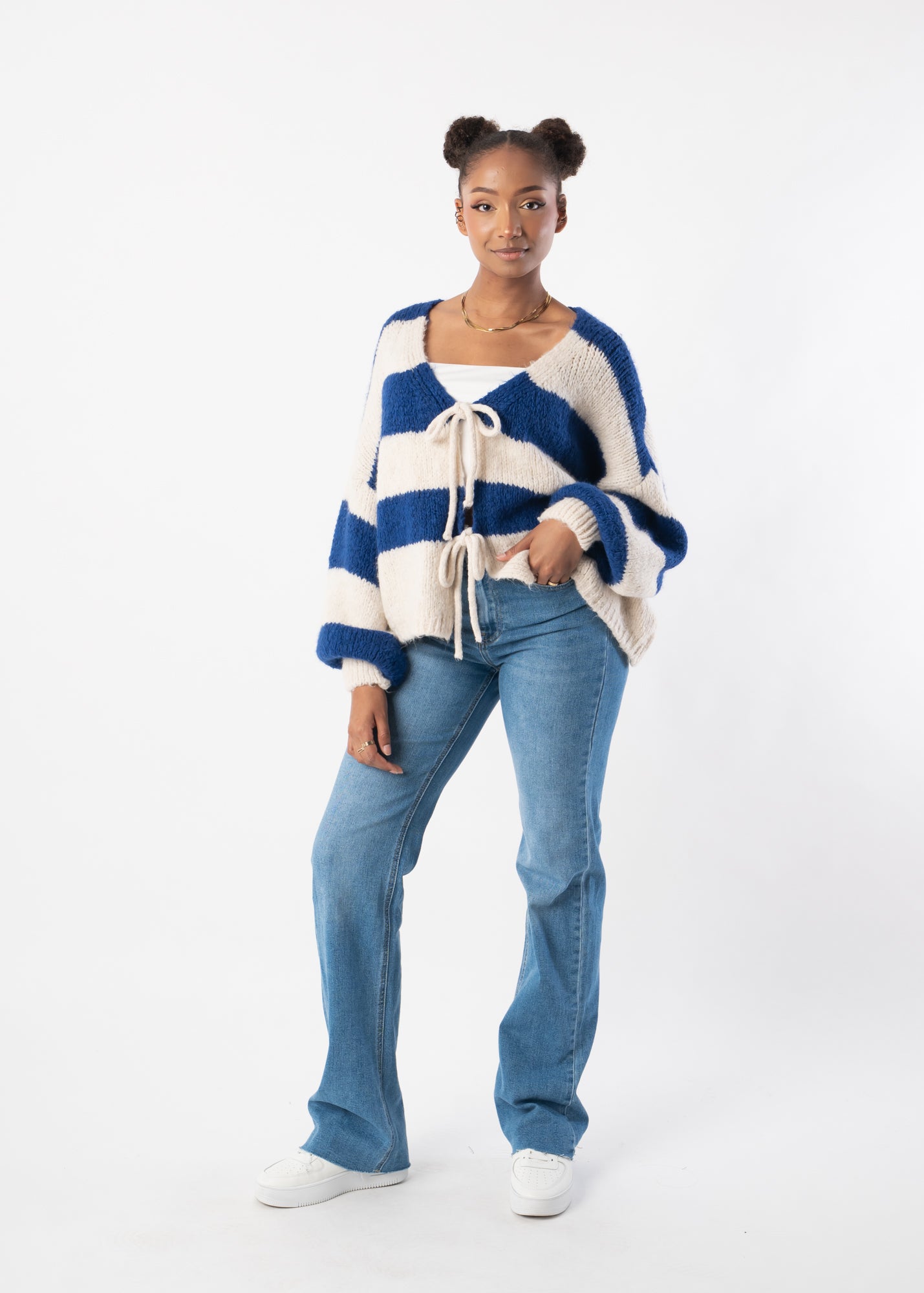 Wide Stripe Knit Strickjacke - Blau/Creme