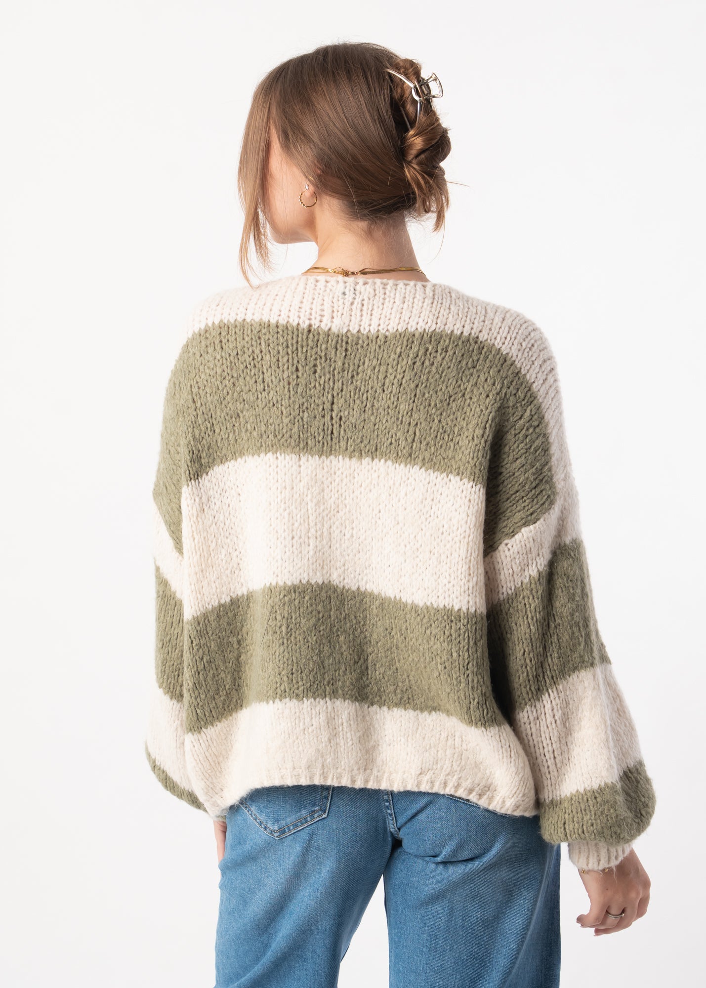 Wide Stripe Knit Strickjacke - Creme/Matcha