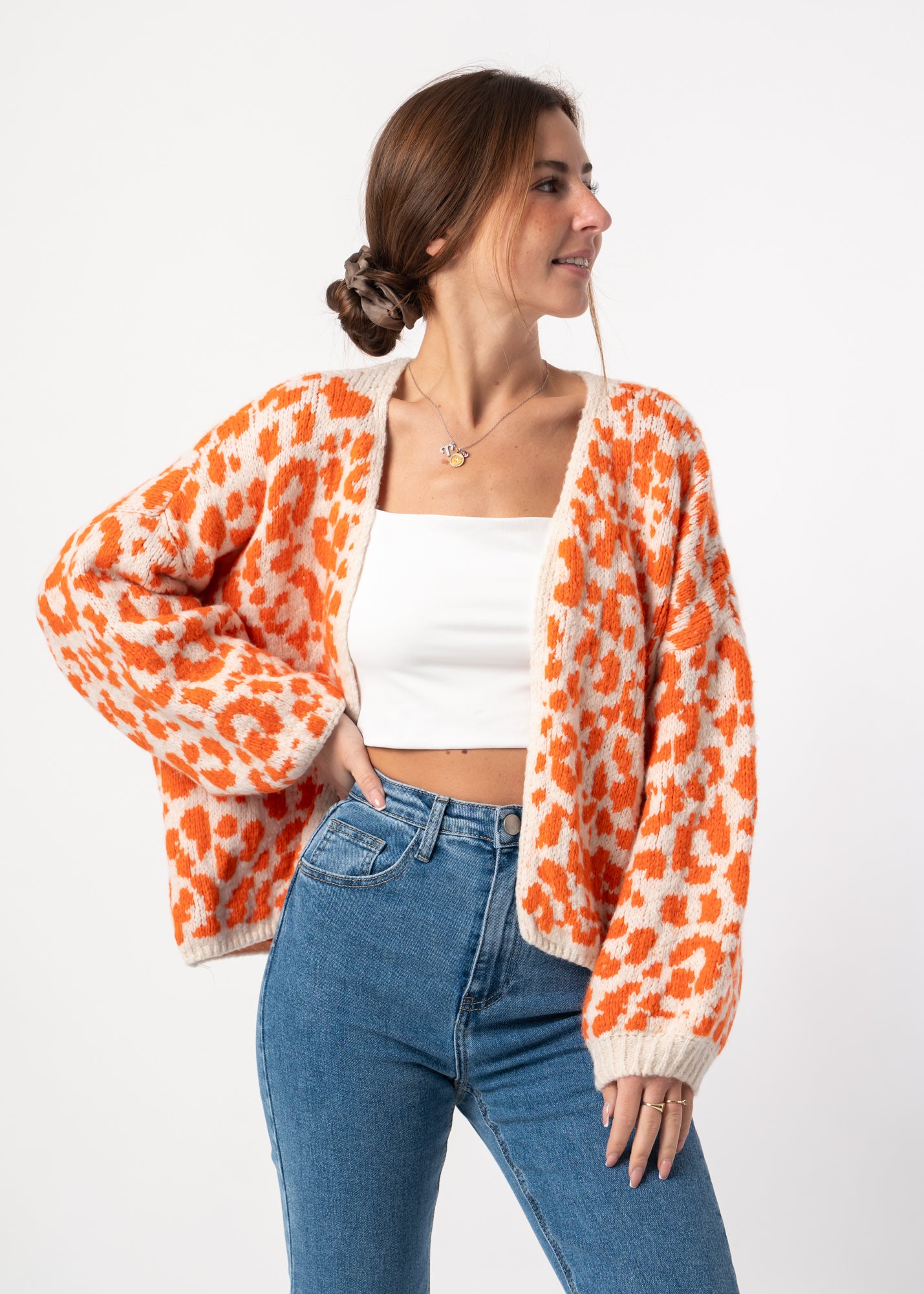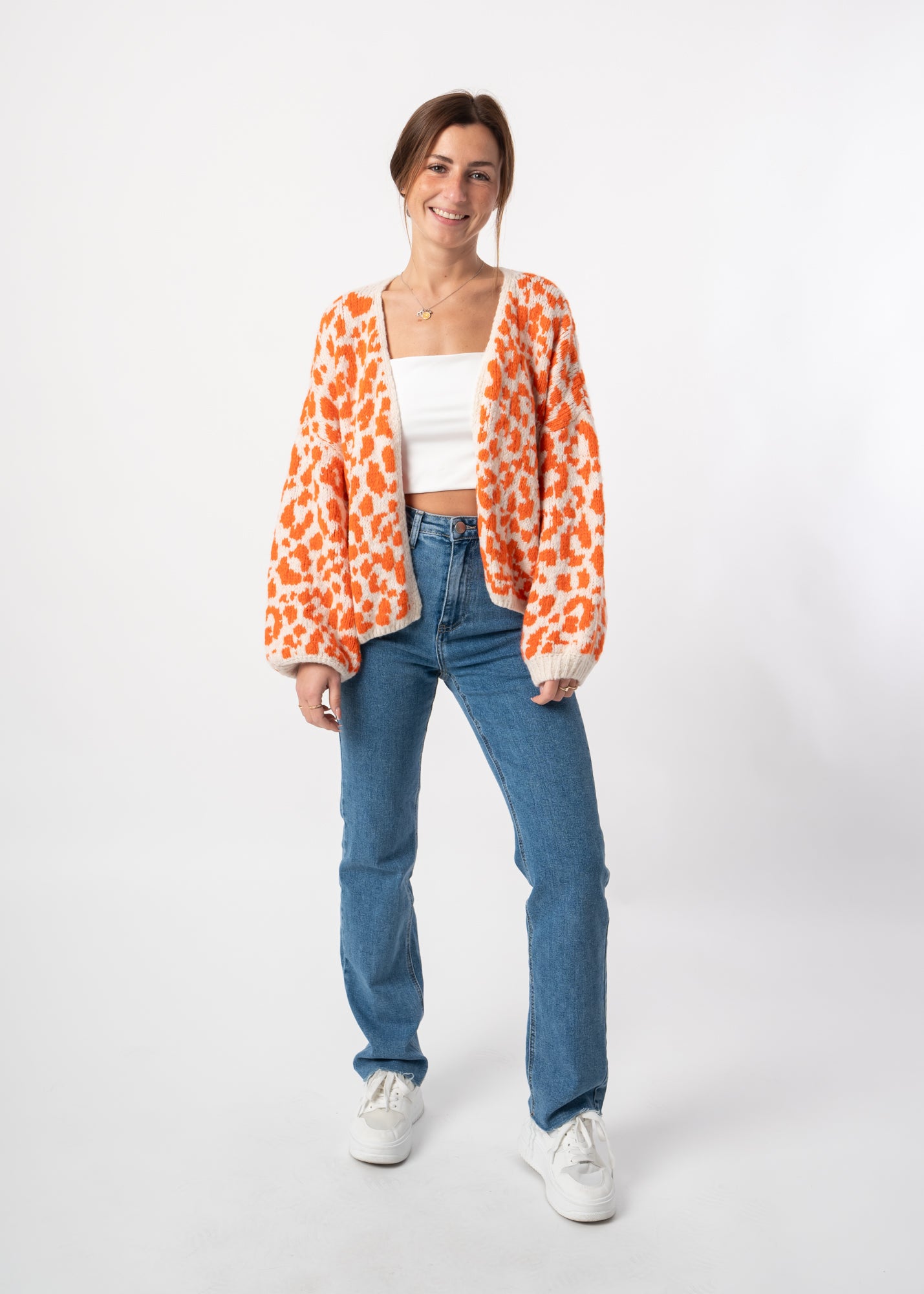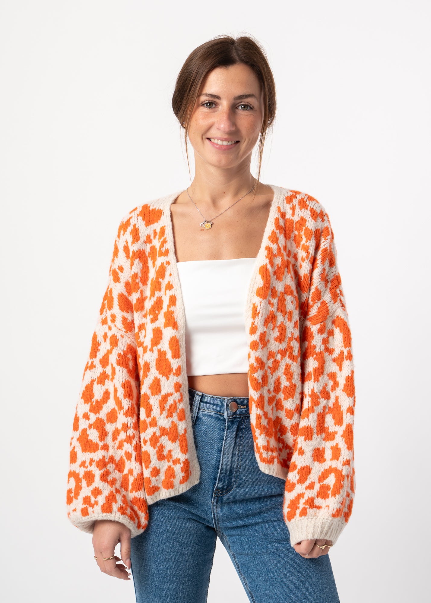 Wide Stripe Knit Strickjacke - Apricot/Creme