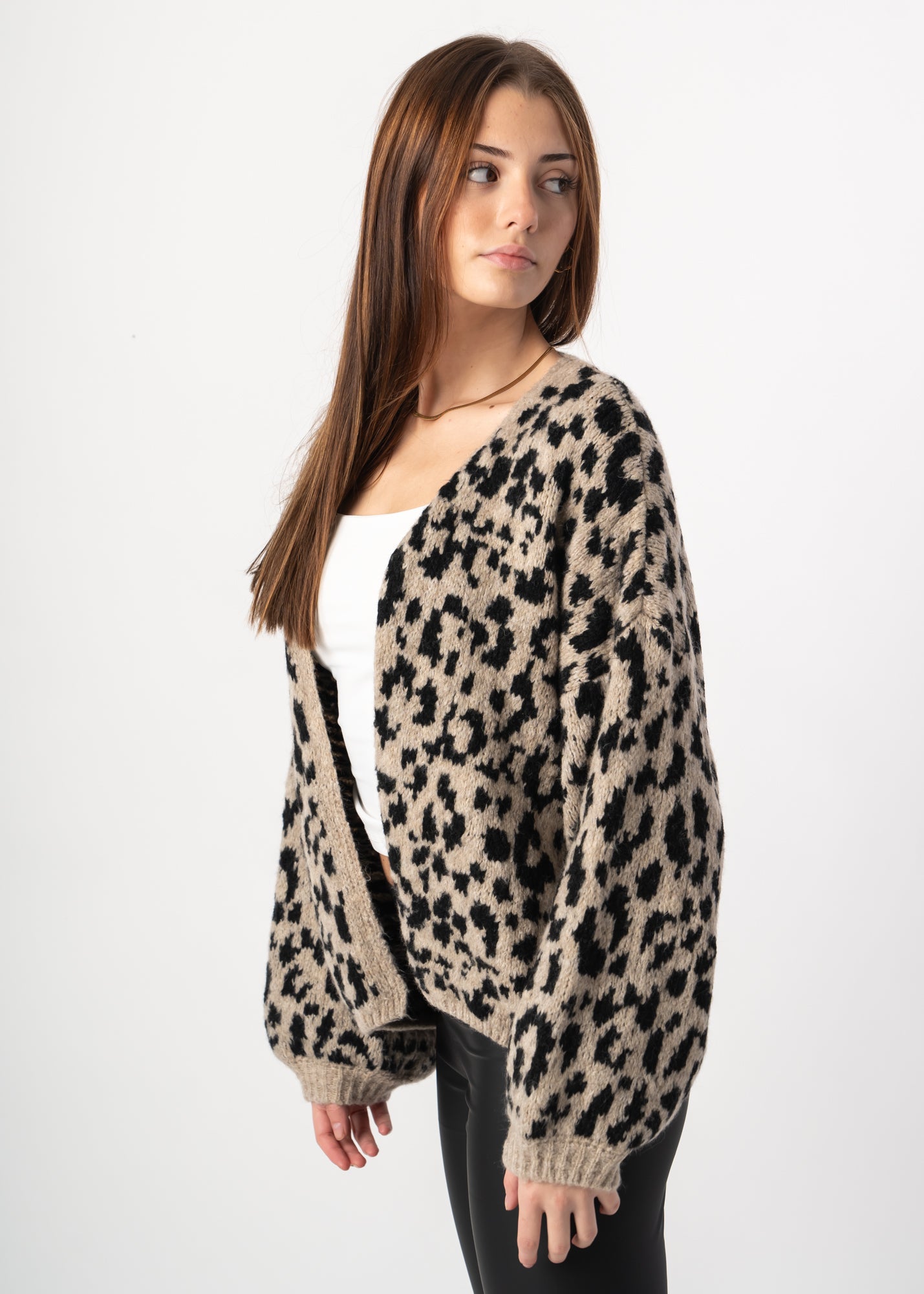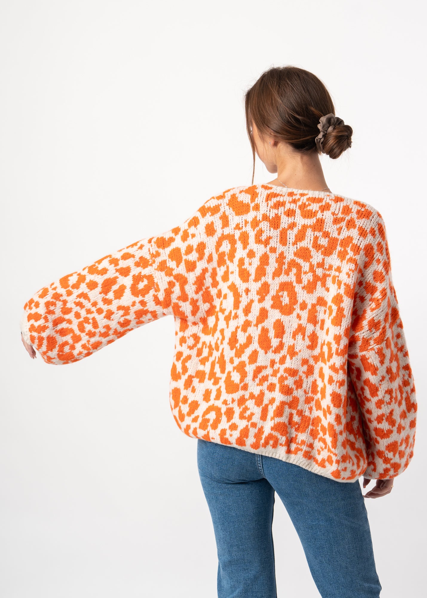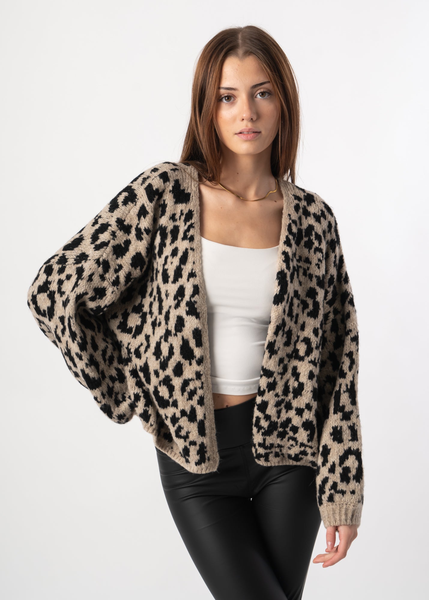 Wide Stripe Knit Strickjacke - Apricot/Creme