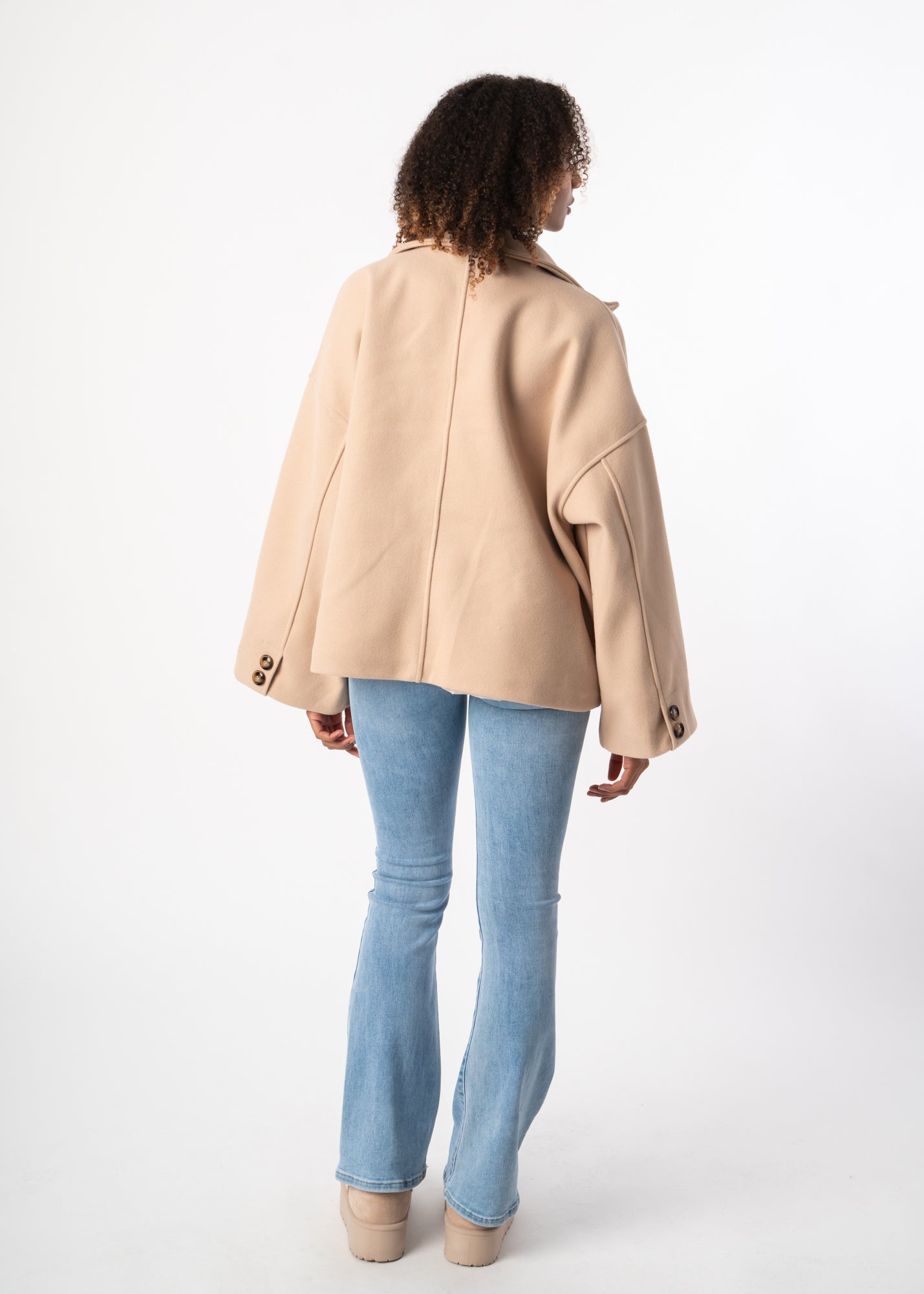 Diese kastig geschnittene Jacke kombiniert klare Linien und zeitlose Eleganz, mit farblich abgestimmten Knöpfen und einem klassischen Kragen für einen gepflegten, modernen Look – ideal für stilvolle Outfits