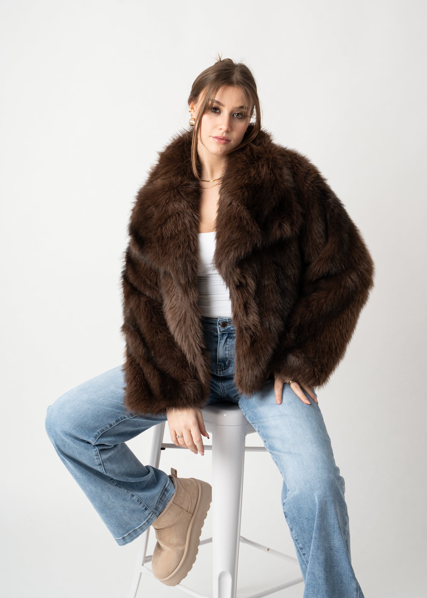 Die Jacke ist der Inbegriff von Eleganz und Wärme. Das hochwertige Kunstfell mit natürlicher Farbgebung verleiht ihr einen luxuriösen Look, während der lockere Schnitt für ein cozy Tragegefühl sorgt. Perfekt für besondere Anlässe oder stylische Alltagsmomente – weich, edel und absolut zeitlos.