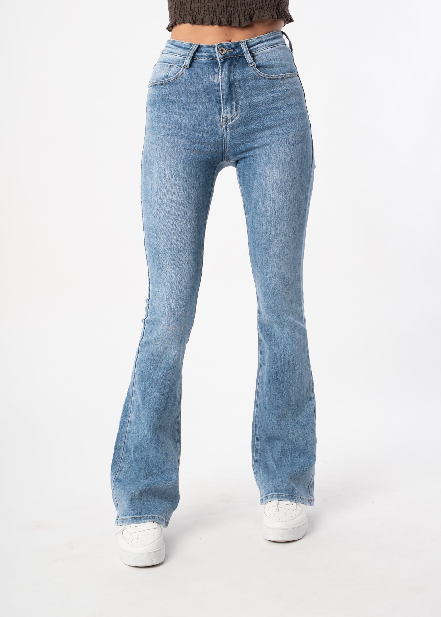 Skinny Flare Jeans - Mittelblau