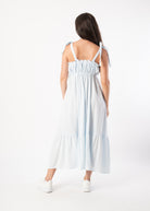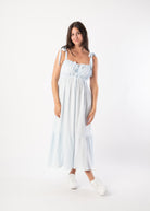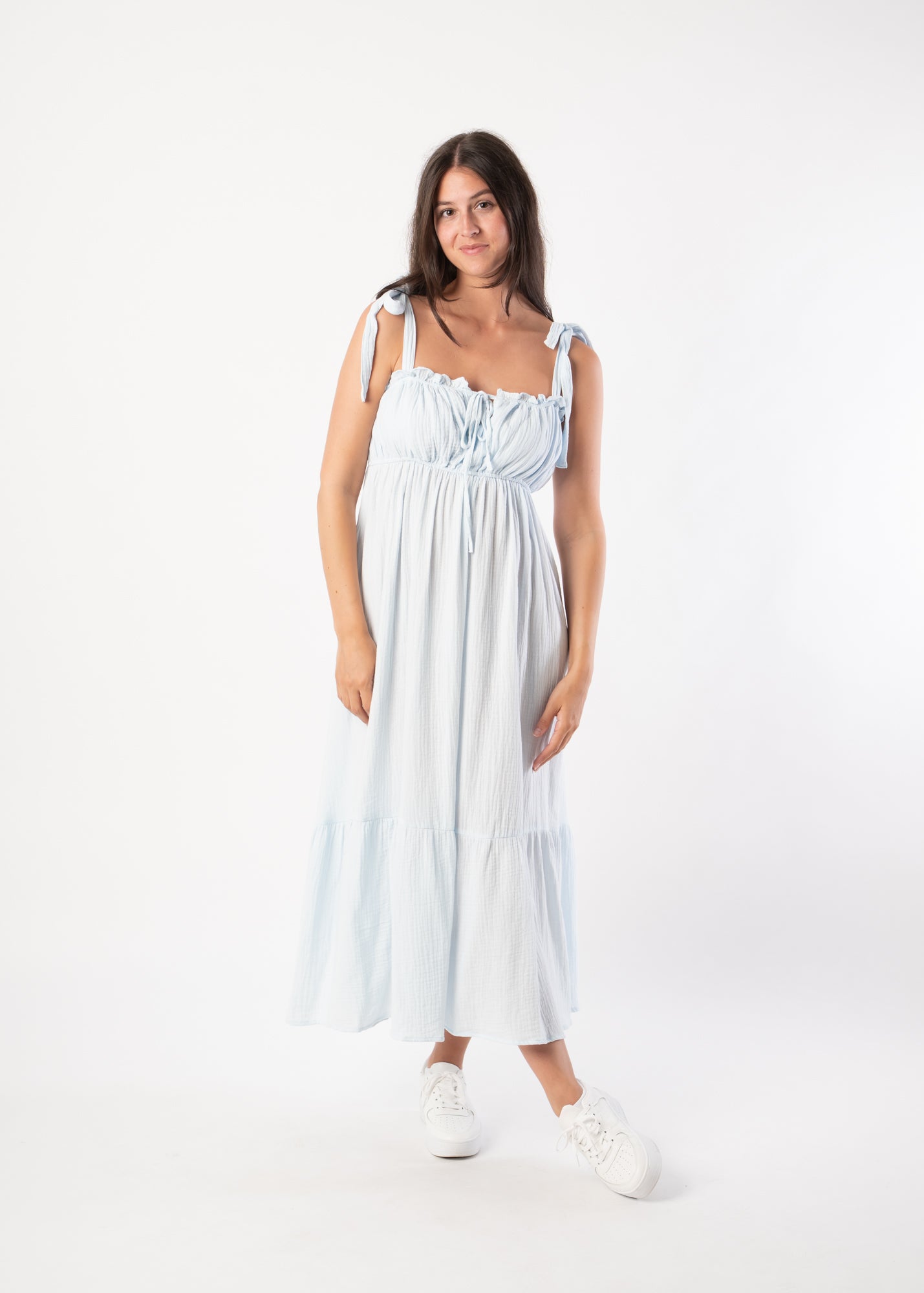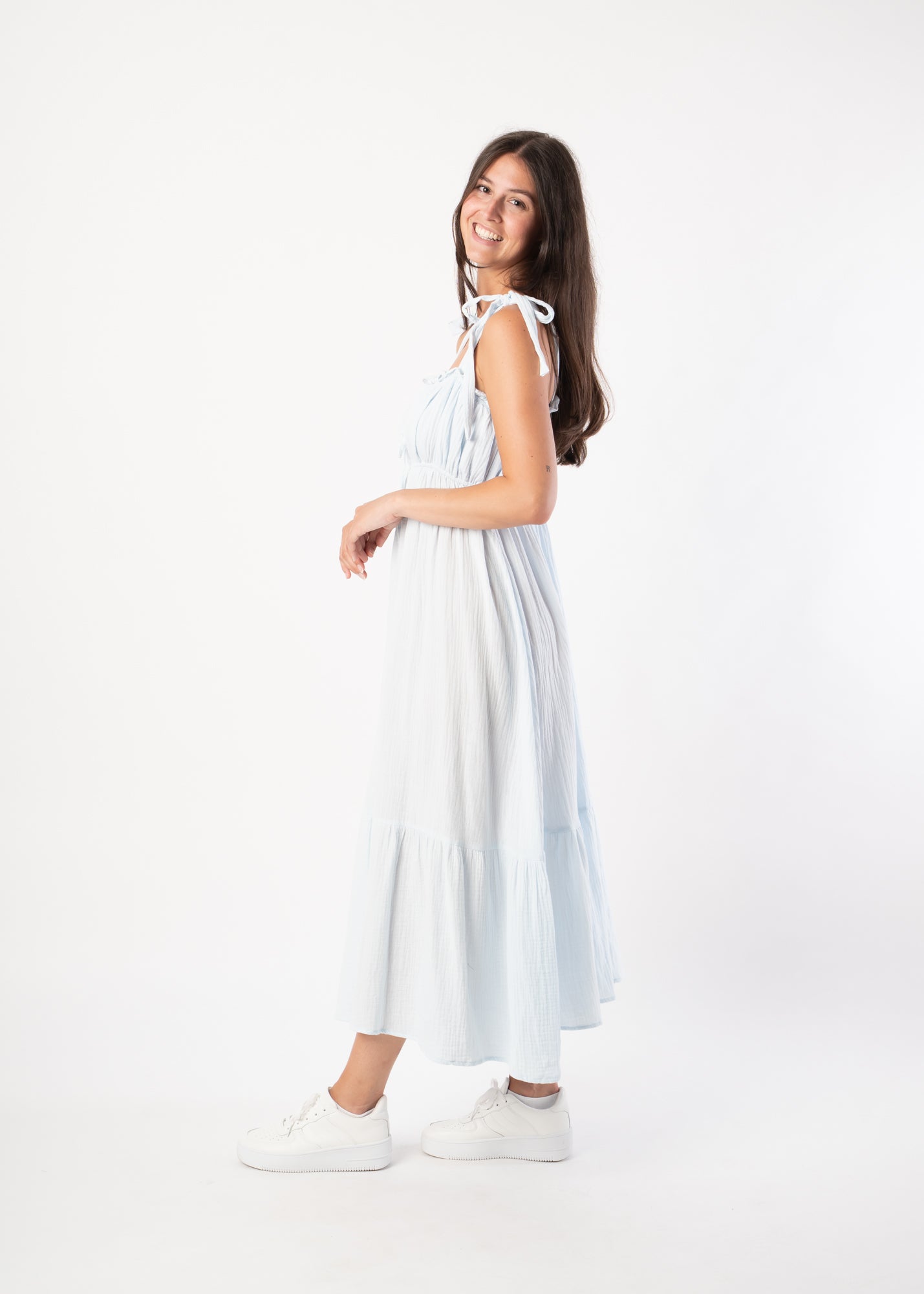 Wie ein Sommertag zum Anziehen: Dieses lange Babydoll-Kleid aus 100 % Baumwolle versprüht Leichtigkeit und feminine Verspieltheit. Die zarten Träger, der luftige Schnitt und die feinen Rüschen machen es zum perfekten Begleiter für entspannte Stunden in der Sonne – ob barfuß am Strand oder mit Sandalen in der City.