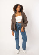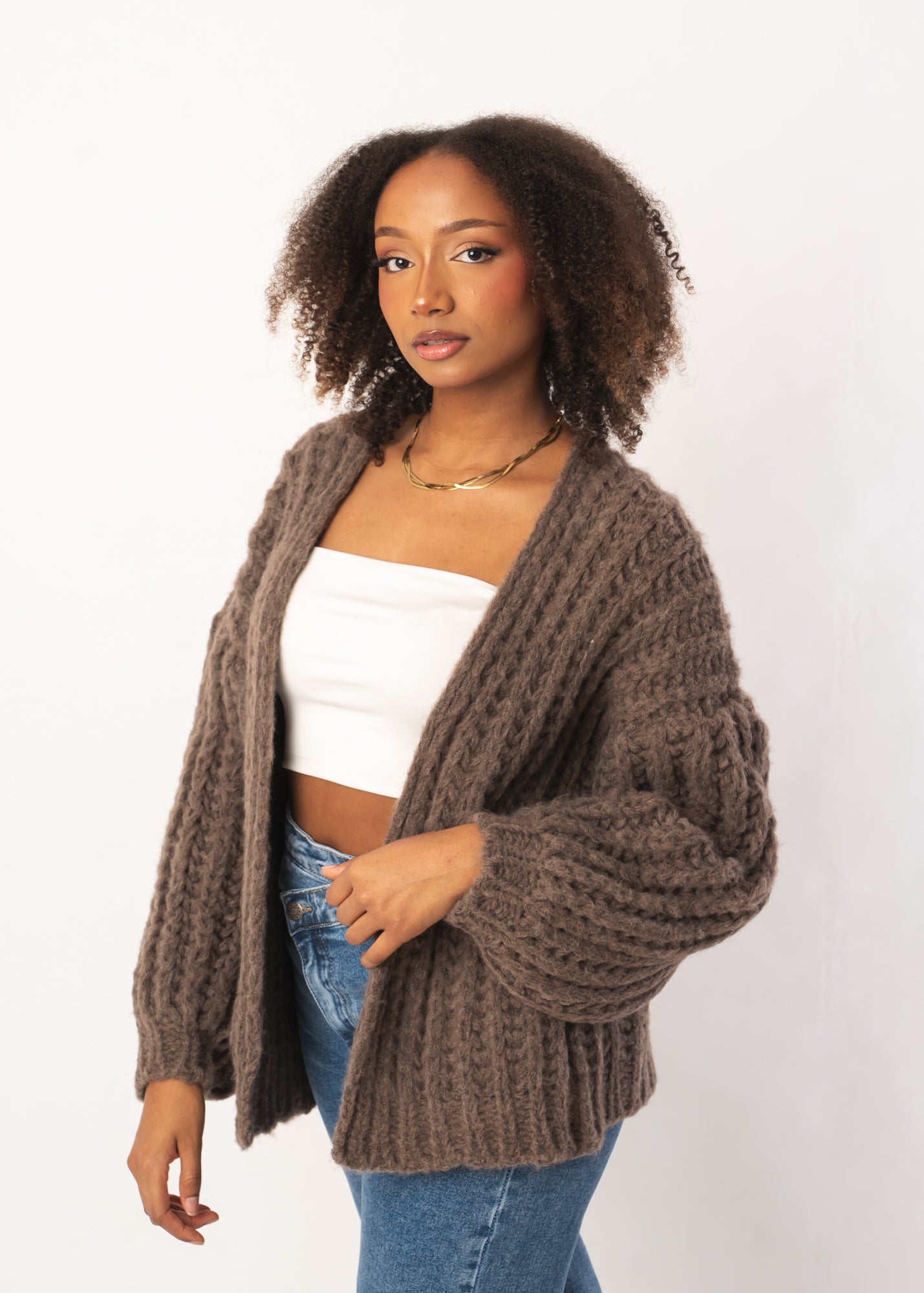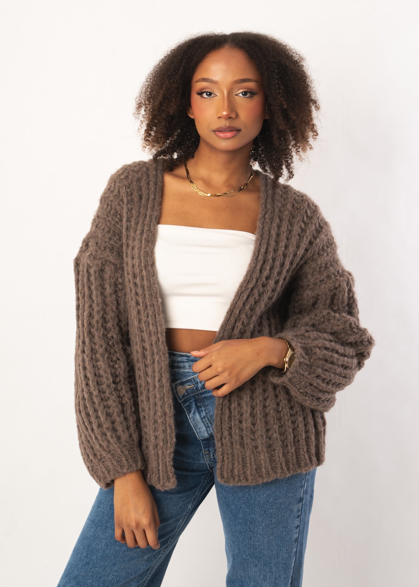 Dieser grob gestrickte Cardigan bringt sofort Wärme und Stil in deinen Look. Der voluminöse Strick, die weiche Haptik und der lässige Oversize-Fit machen ihn zum perfekten Piece für gemütliche Tage mit modischem Statement. Einfach überwerfen, wohlfühlen und dein Outfit auf das nächste Level heben.