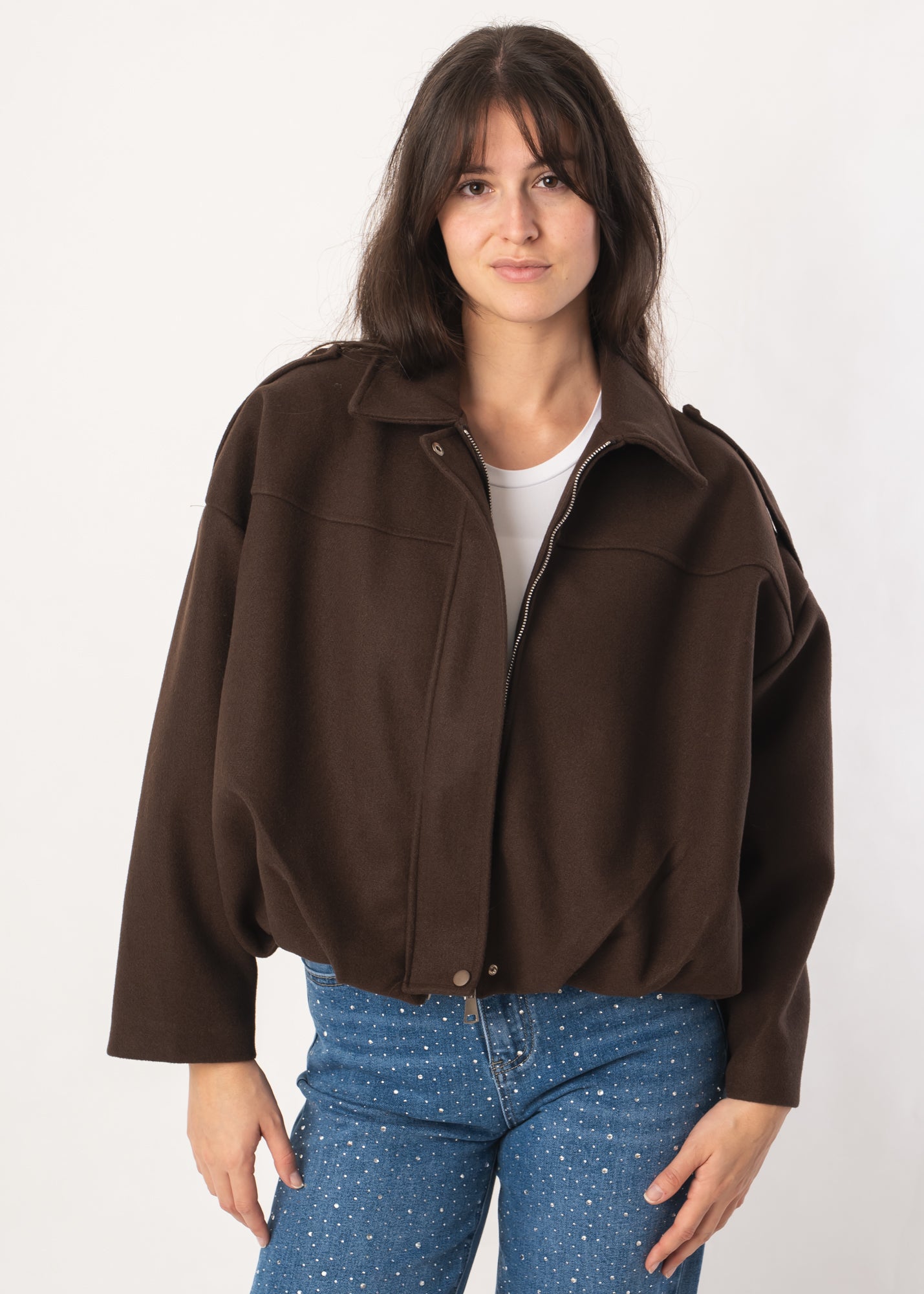 Die Bomber Manteljacke vereint eleganten Chic mit einem coolen, lässigen Schnitt. Durch das strukturierte Material, die betonten Schultern und den modernen Oversize-Fit wirkt sie wie eine Mischung aus Mantel und Bomberjacke. Zeitlos, edel und trotzdem entspannt. Perfekt für Übergangstage und easy kombinierbar zu Jeans, Kleid oder Stoffhose.