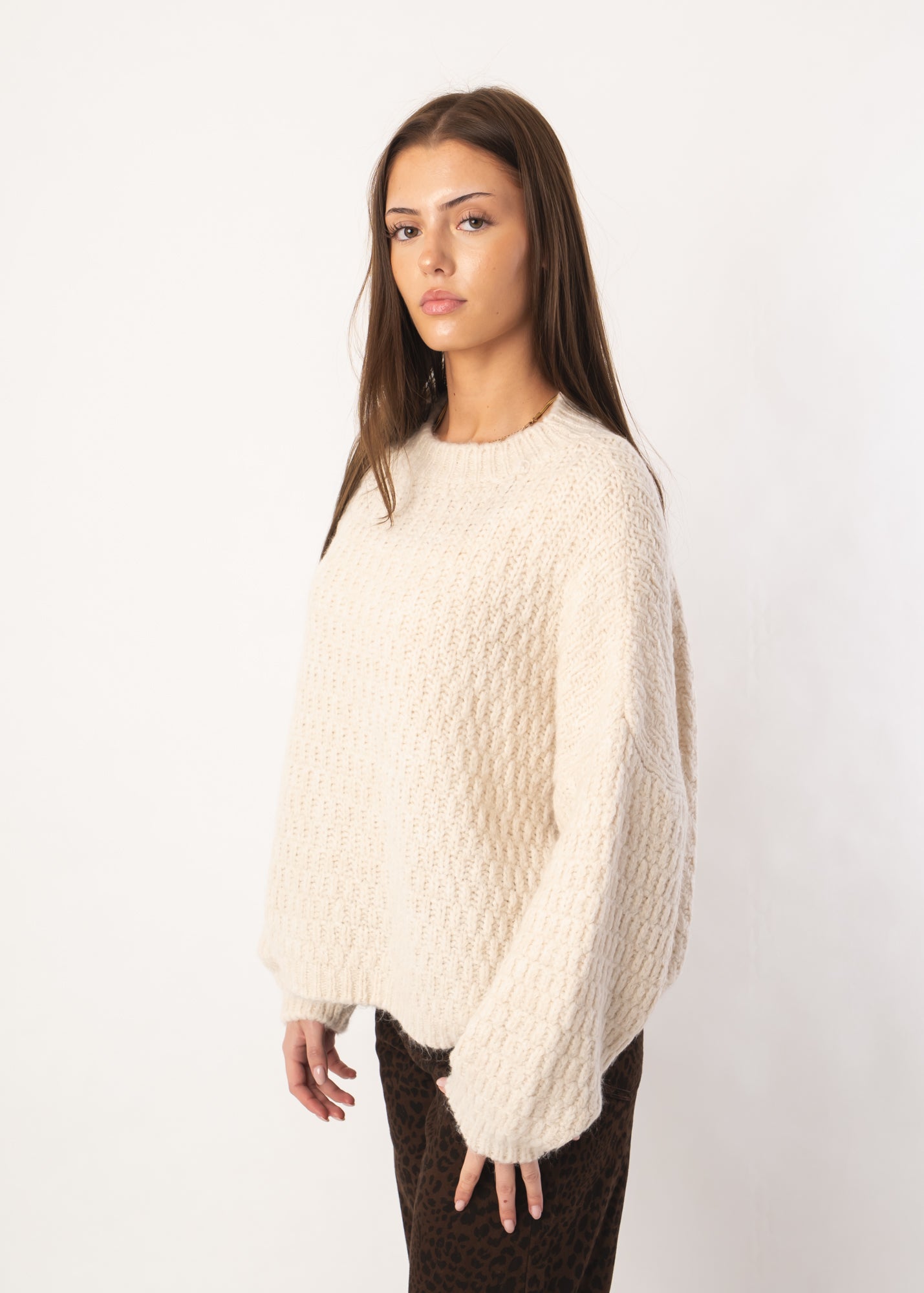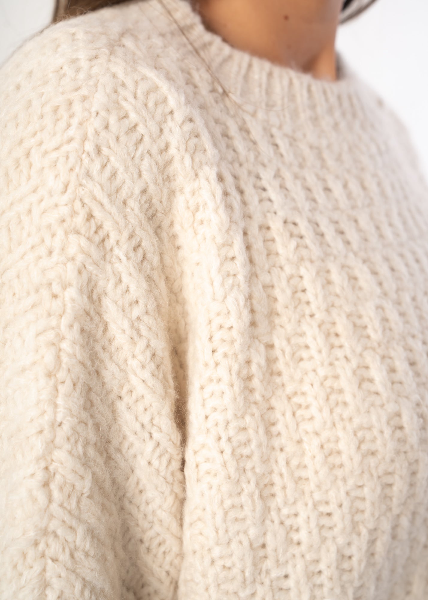 Der Braided Sweater vereint Wärme, Struktur und modernen Stil. Mit seinem grob gestrickten Muster, dem weichen Garn und dem lockeren Schnitt sorgt er für ein cozy Tragegefühl und einen lässigen Look zugleich. Perfekt für kühle Tage – ob zu Jeans, Rock oder Stoffhose, dieser Strickpullover passt einfach immer.