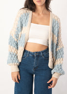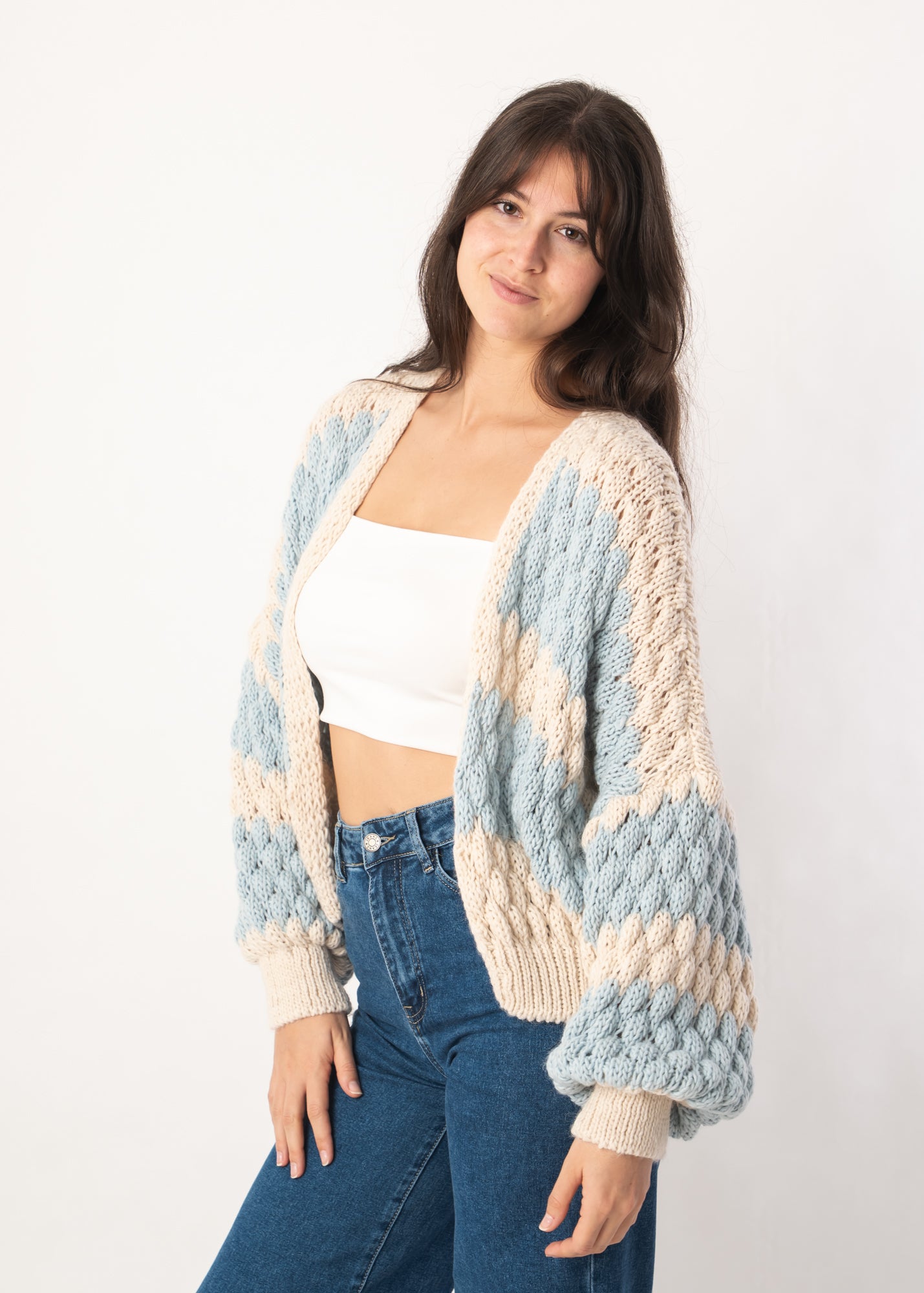 Kuschelig, modern und ein echtes Statement-Piece: Dieser Strickcardigan bringt mit seinem groben Maschenbild und den voluminösen Ballonärmeln sofort Gemütlichkeit in deinen Look.