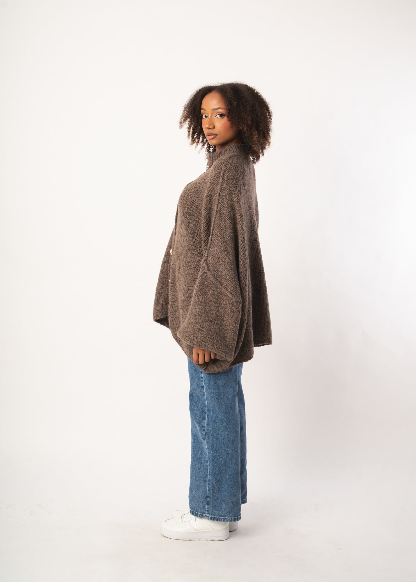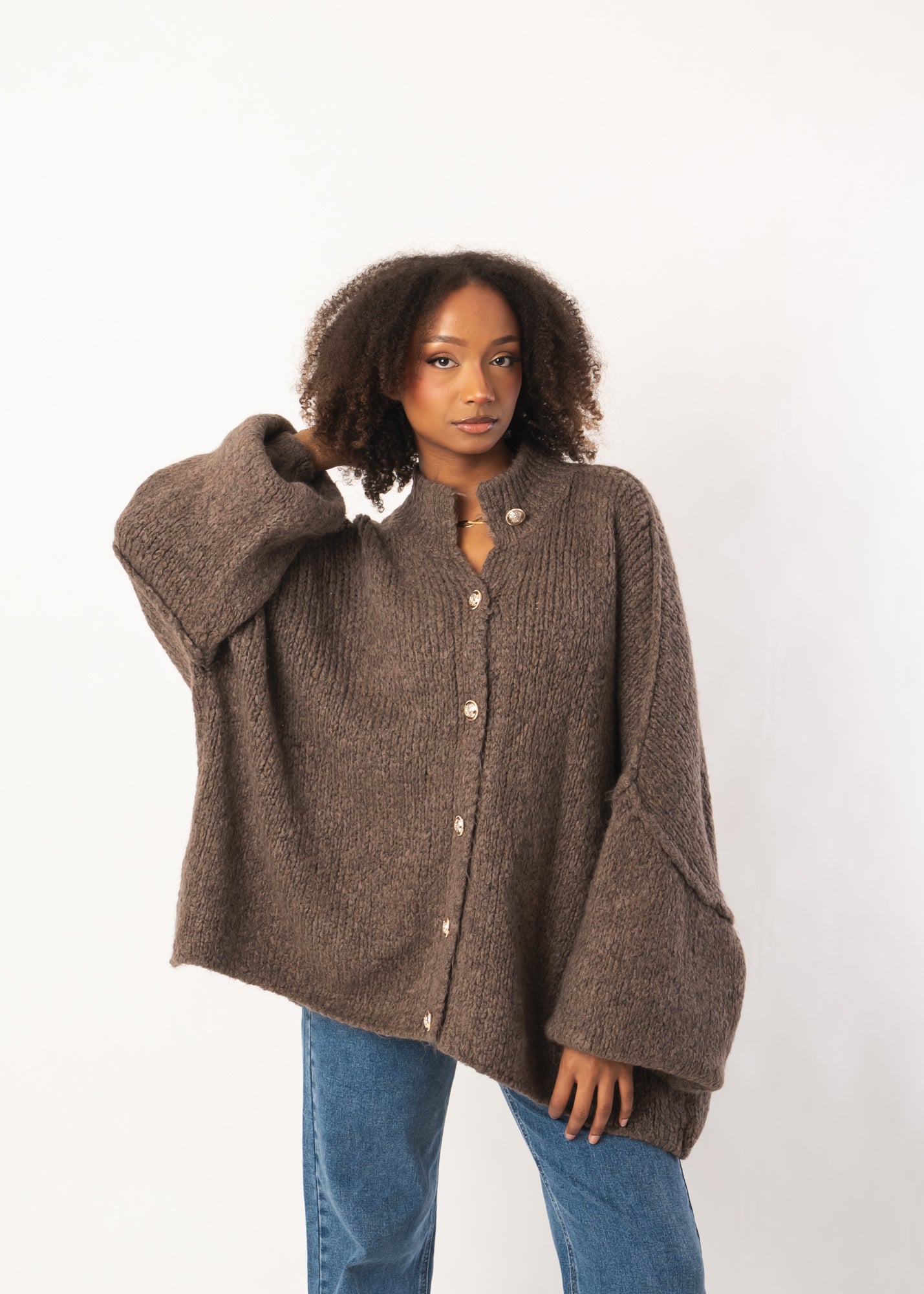 Cozy Oversize Strickjacke - Braun