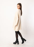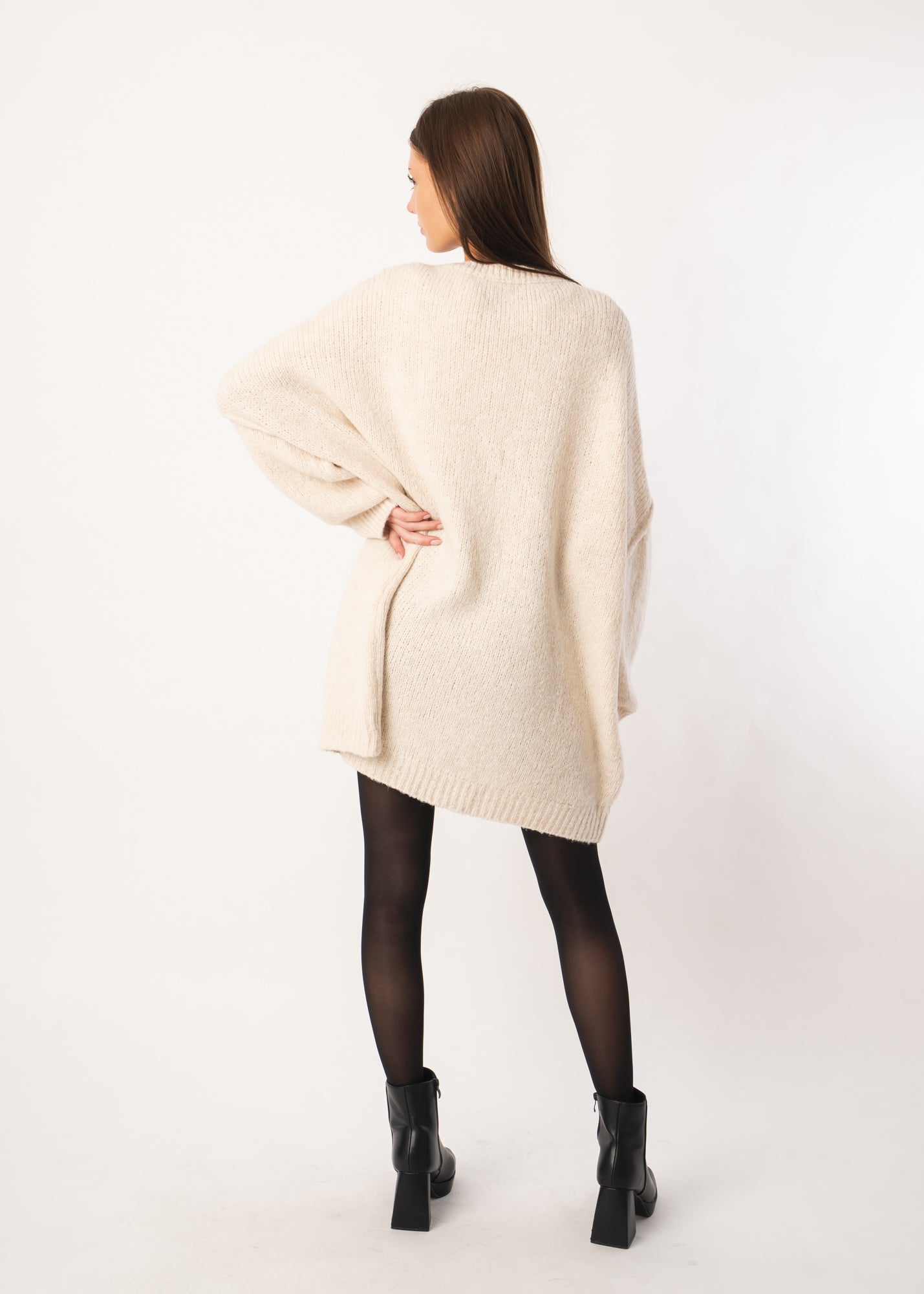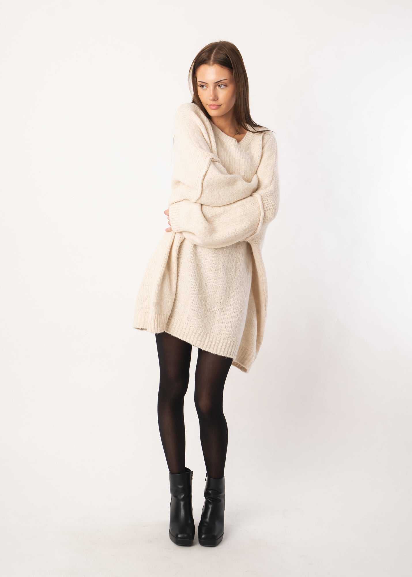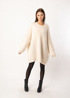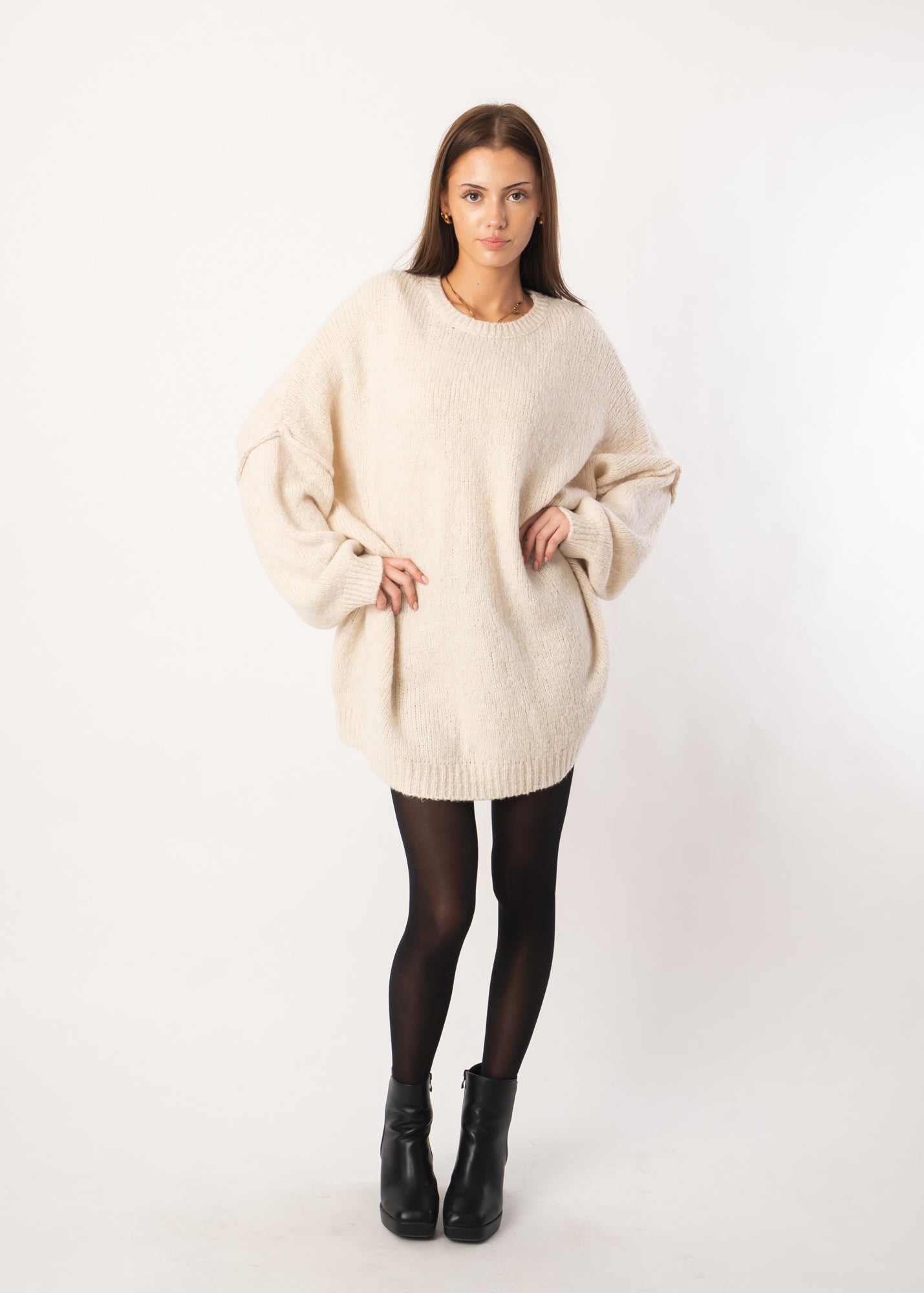 Dieses Pulloverkleid vereint Gemütlichkeit und Stil in einem. Der weiche Strick, der lässige Oversize-Schnitt und die bequemen, leicht fallenden Ärmel machen es zum perfekten Begleiter für kühle Tage. Ob mit Strumpfhose und Boots oder lässig über Jeans, dieses Cozy Pulloverkleid sorgt immer für einen entspannten, modernen Look.