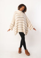 Ein kuscheliger Oversize-Pullover, der dir sofort ein Gefühl von Wärme und Geborgenheit schenkt. Das grob gestrickte Design mit hohem Kragen und weiten Ärmeln sorgt für einen entspannten Look und macht ihn zu deinem perfekten Begleiter an kalten Tagen. Kann als Pullover oder auch als Kleid getragen werden.