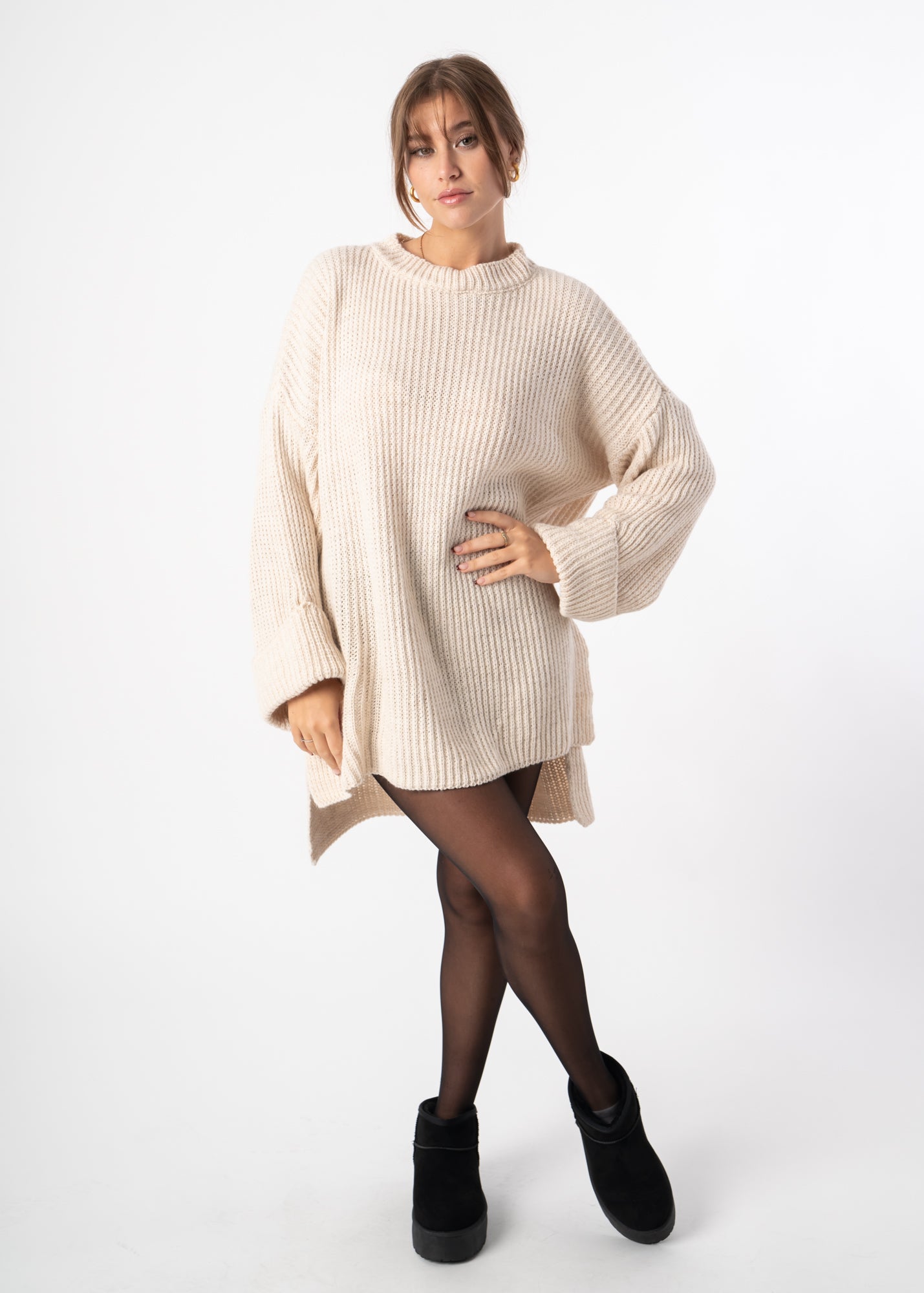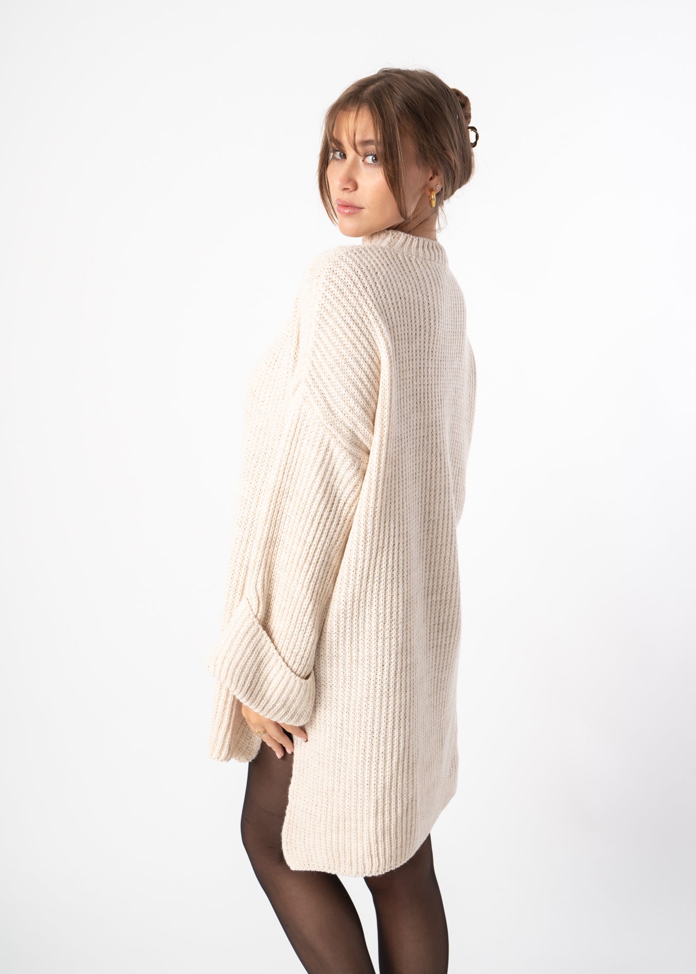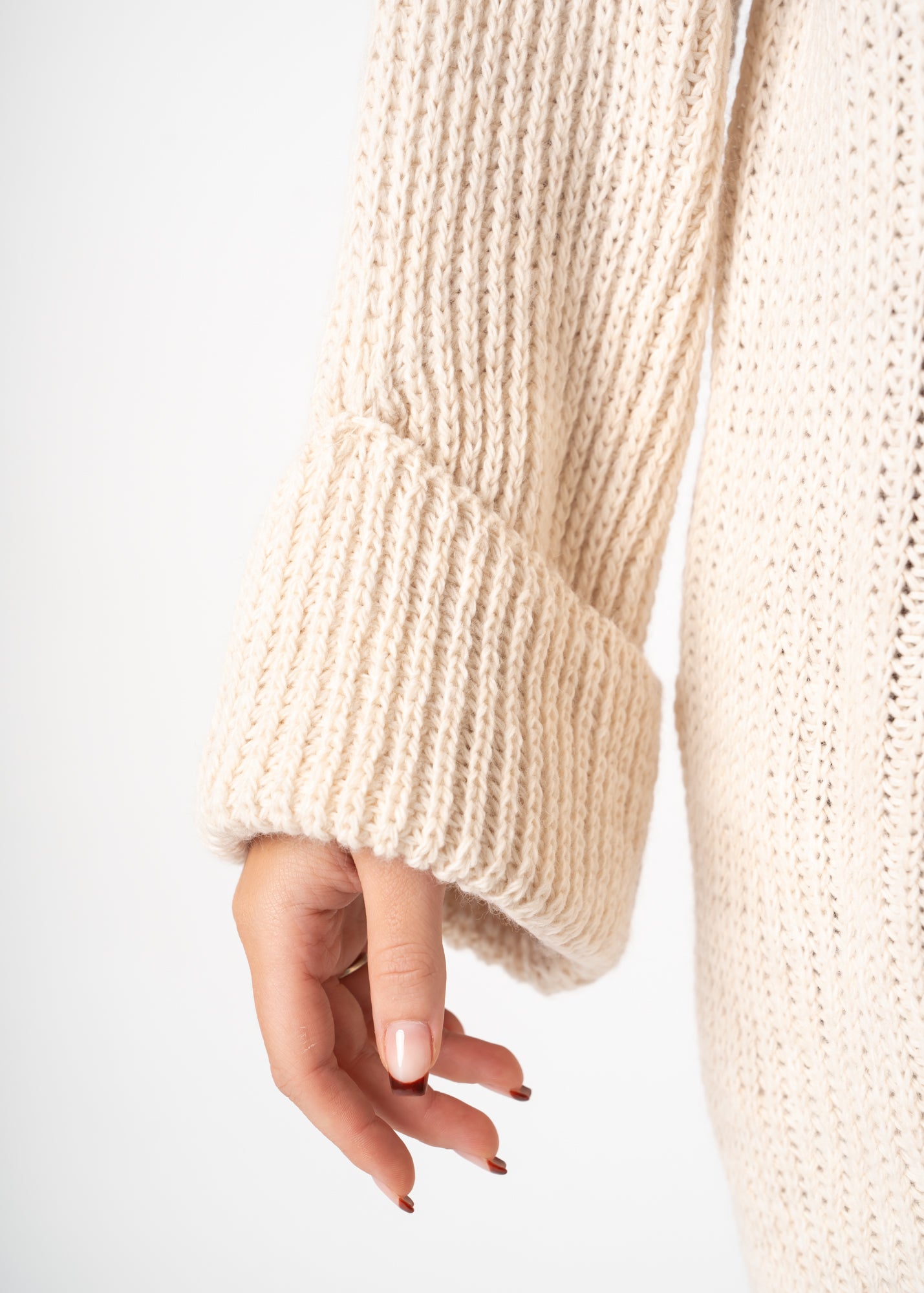 Dieser Strickpullover verbindet lässigen Komfort mit einem cleanen Look. Durch seinen lockeren Schnitt, die weichen Maschen und die langen Ärmel mit breiten Bündchen wird er zum perfekten Begleiter für entspannte Tage, den du easy zu Jeans oder über ein Kleid kombinieren kannst.