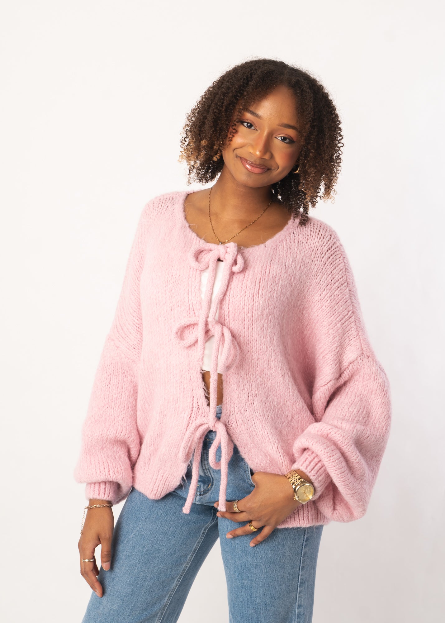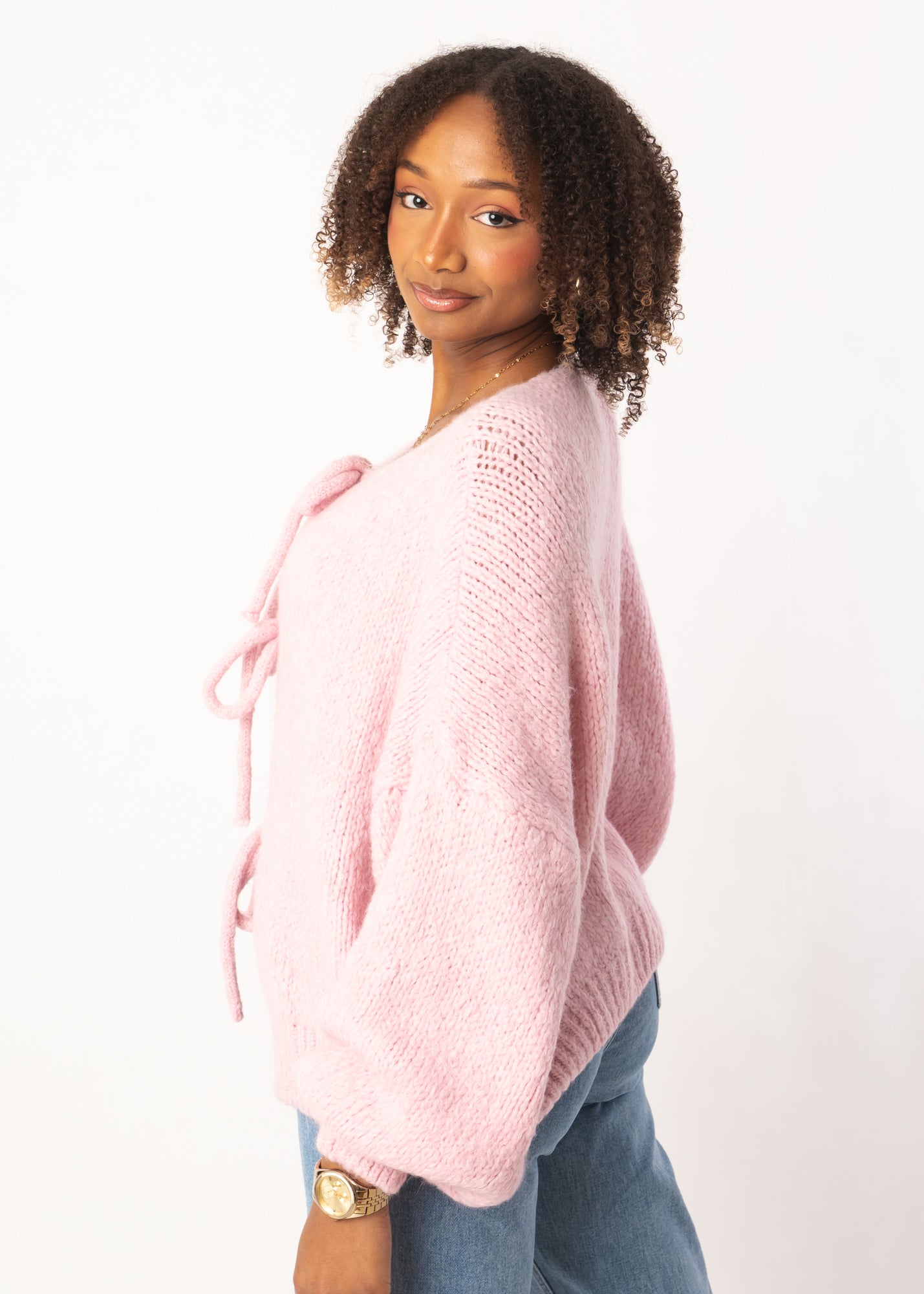 Soft Bow Cardigan - Rosa