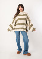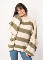 Wide Stripe Oversize Pullover - Beige/Matcha