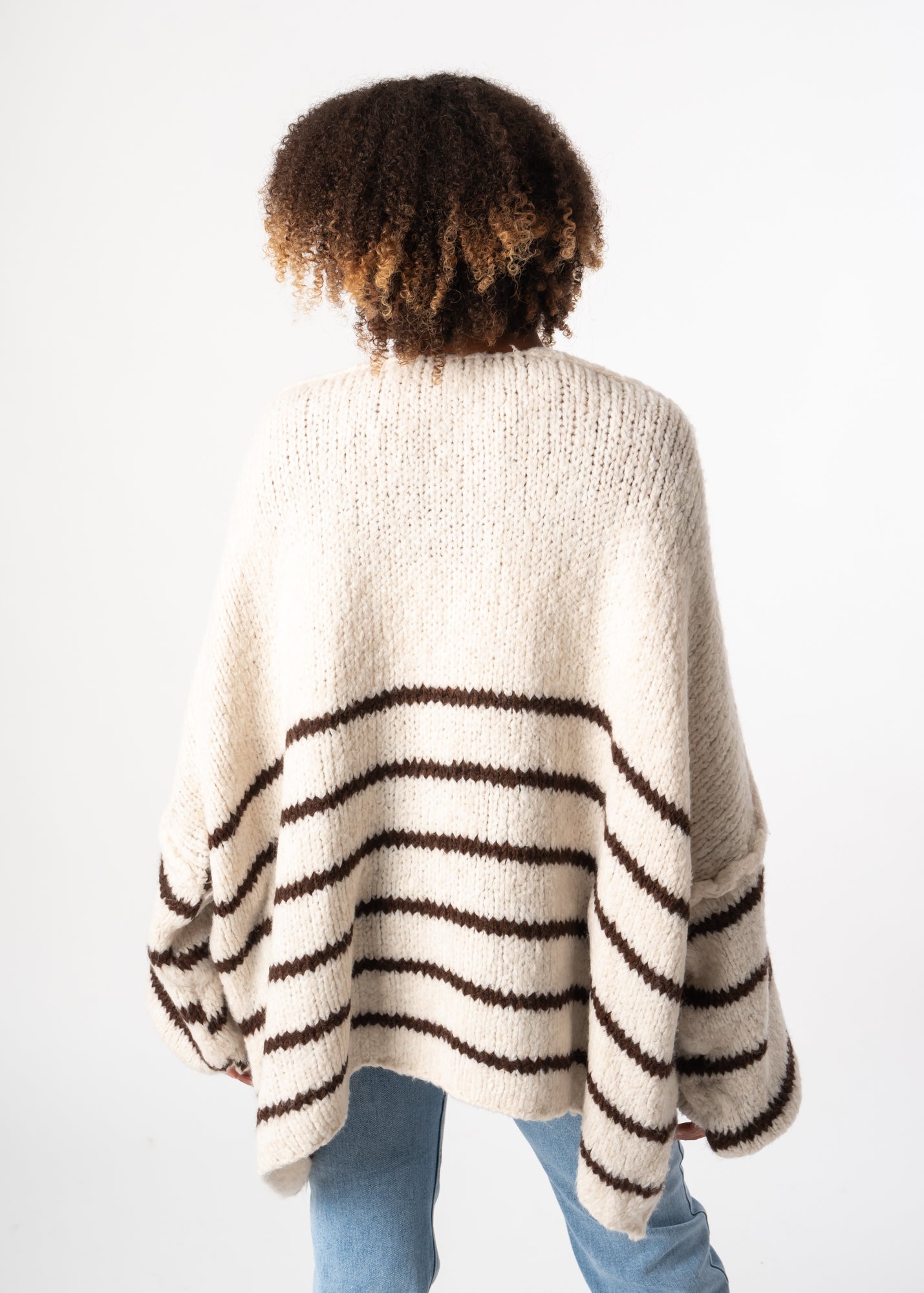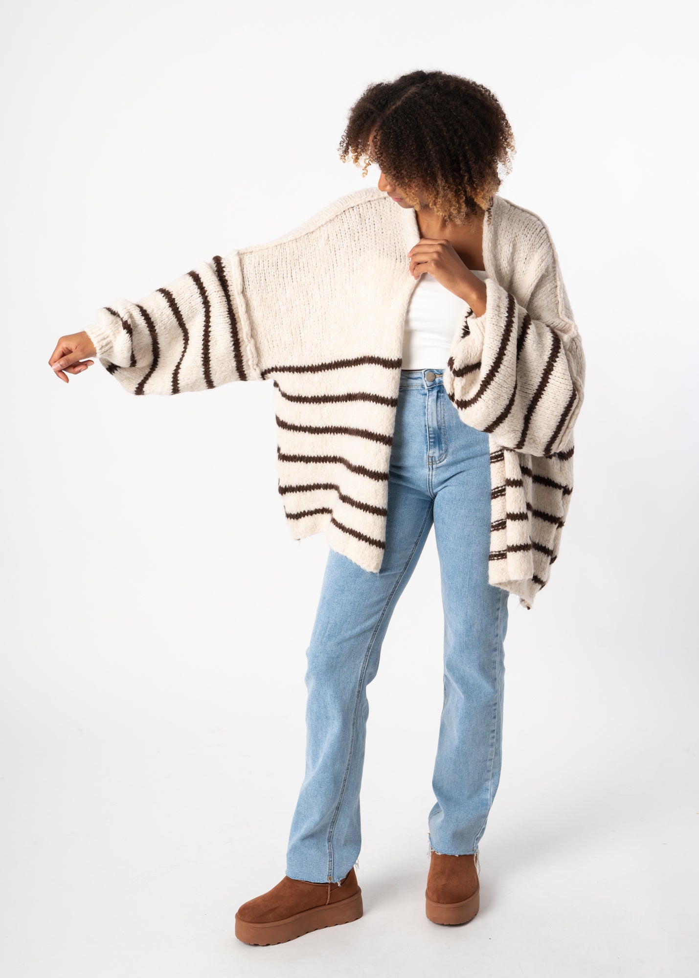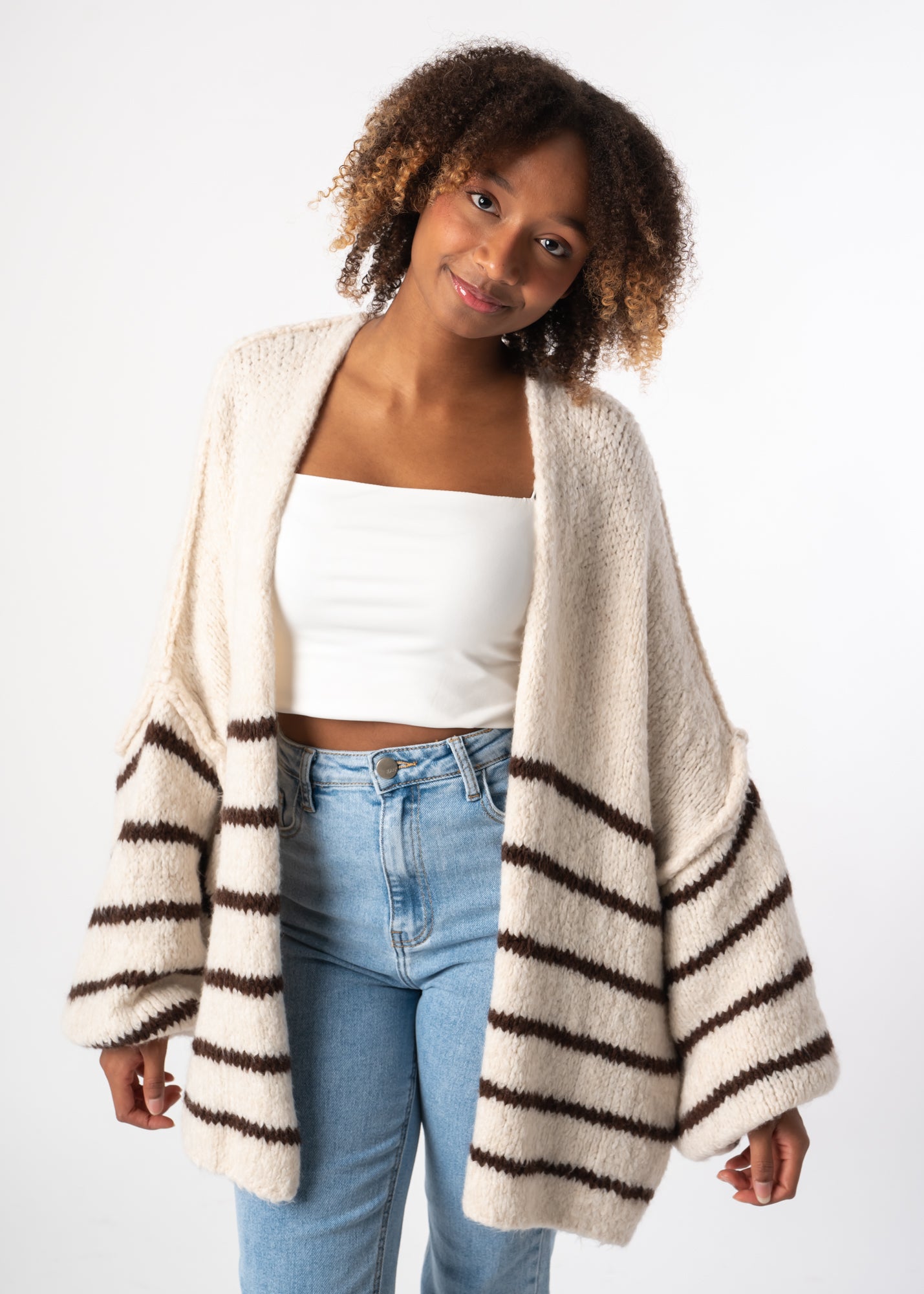 Mit weicher Textur, lockerem Oversize-Schnitt und stylischen Außennähten passt sich dieser offene Cardigan vielseitig an verschiedene Größen an und verleiht jedem Look entspannte Modernität