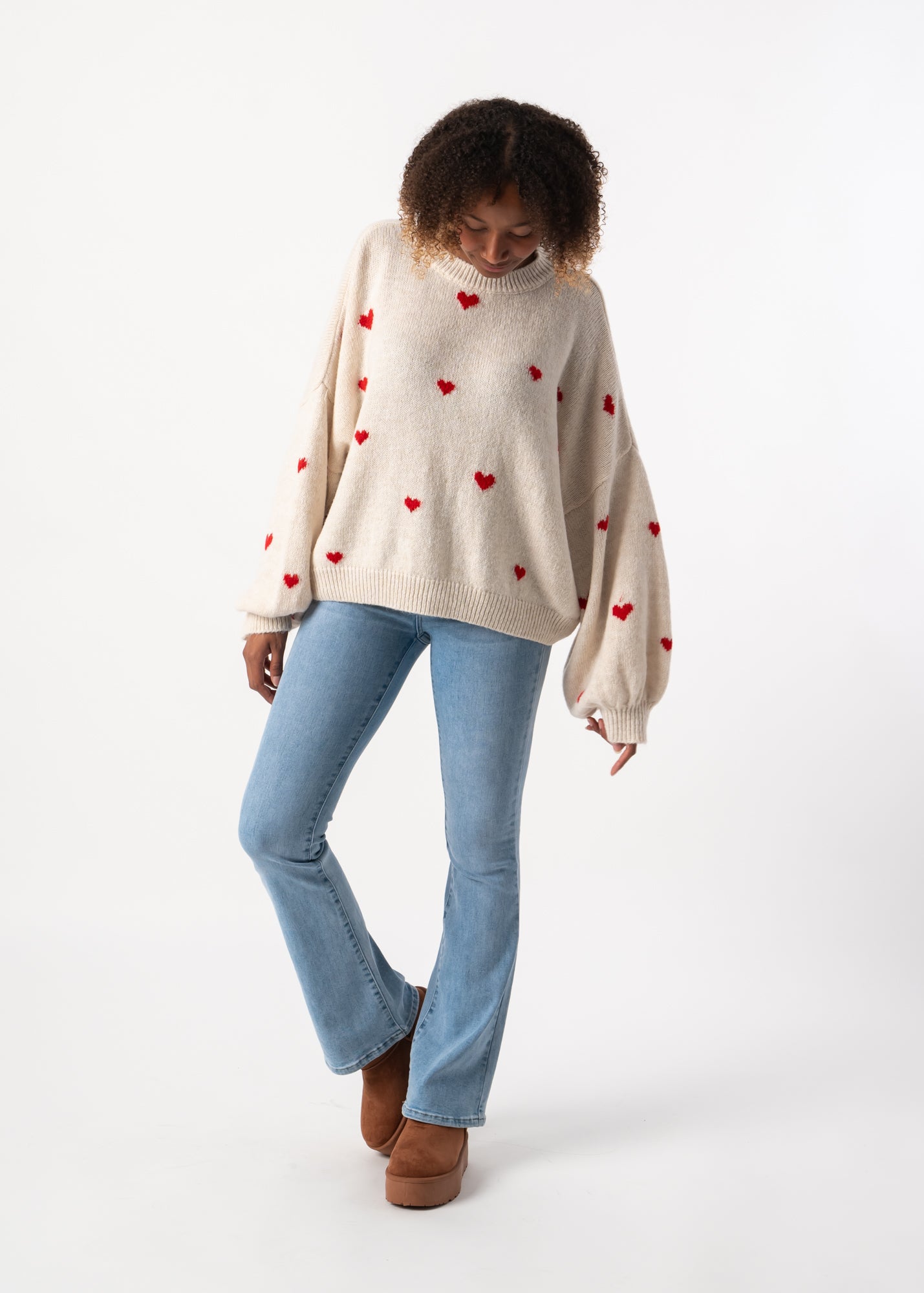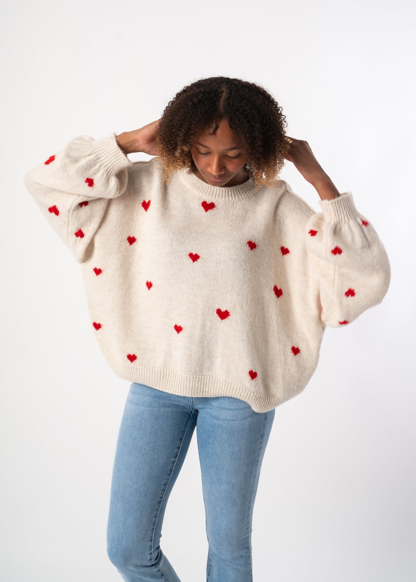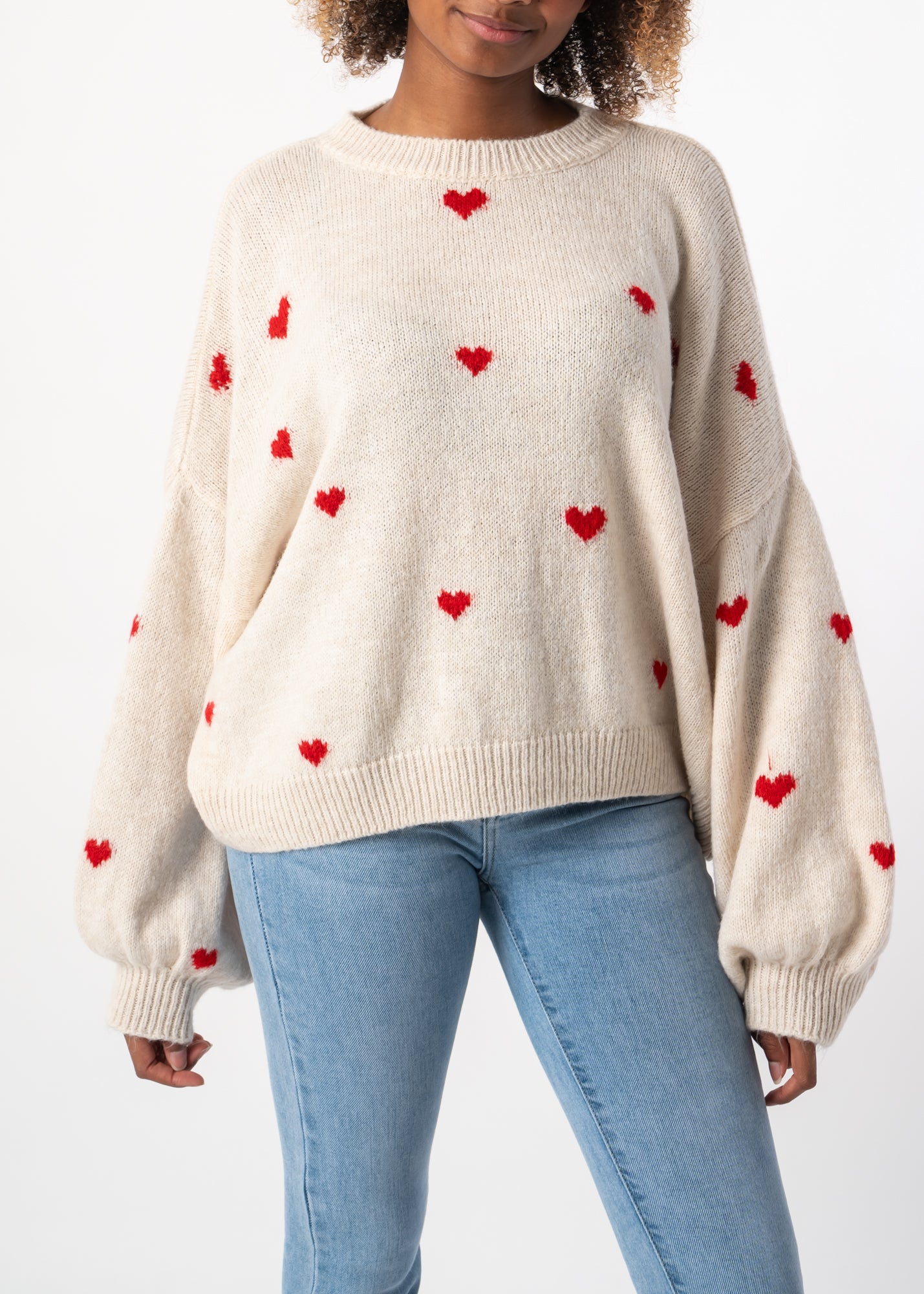 Knit Sweater mit Herzmuster - Beige/Rosa