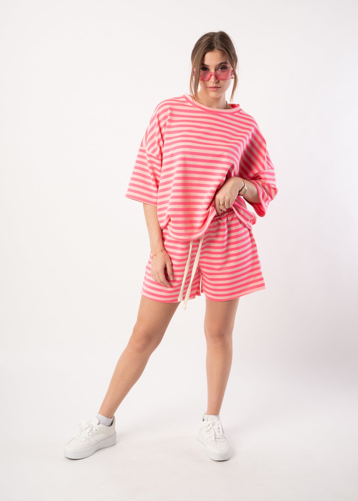 Gestreifte Jersey Shorts - Rosa/Pink