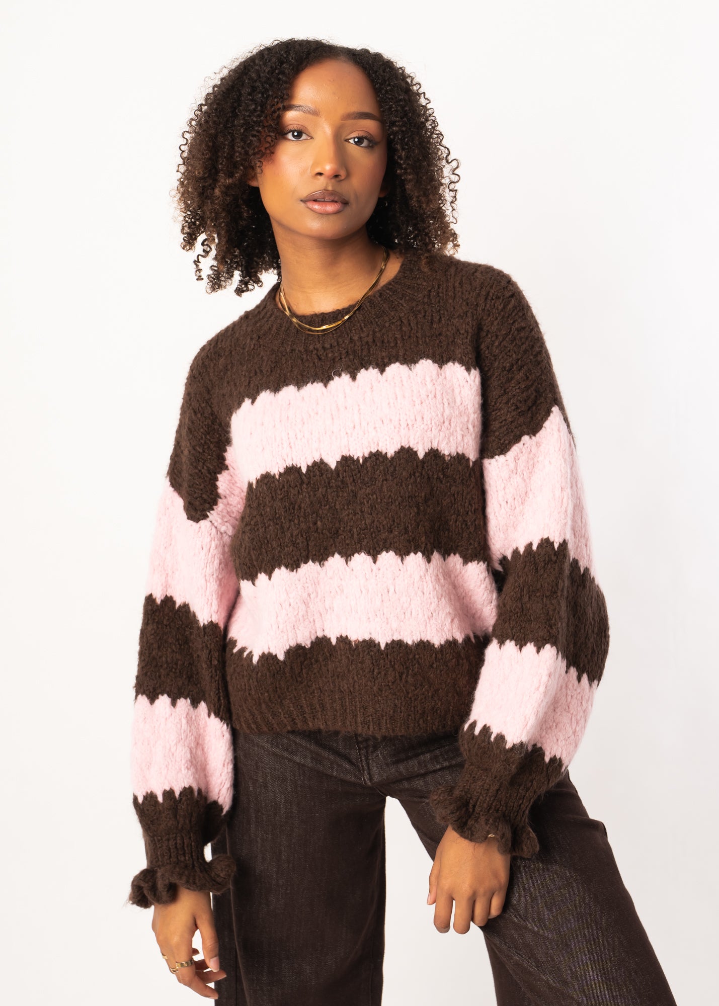 Cloudy Strickpullover - Braun/Rosa