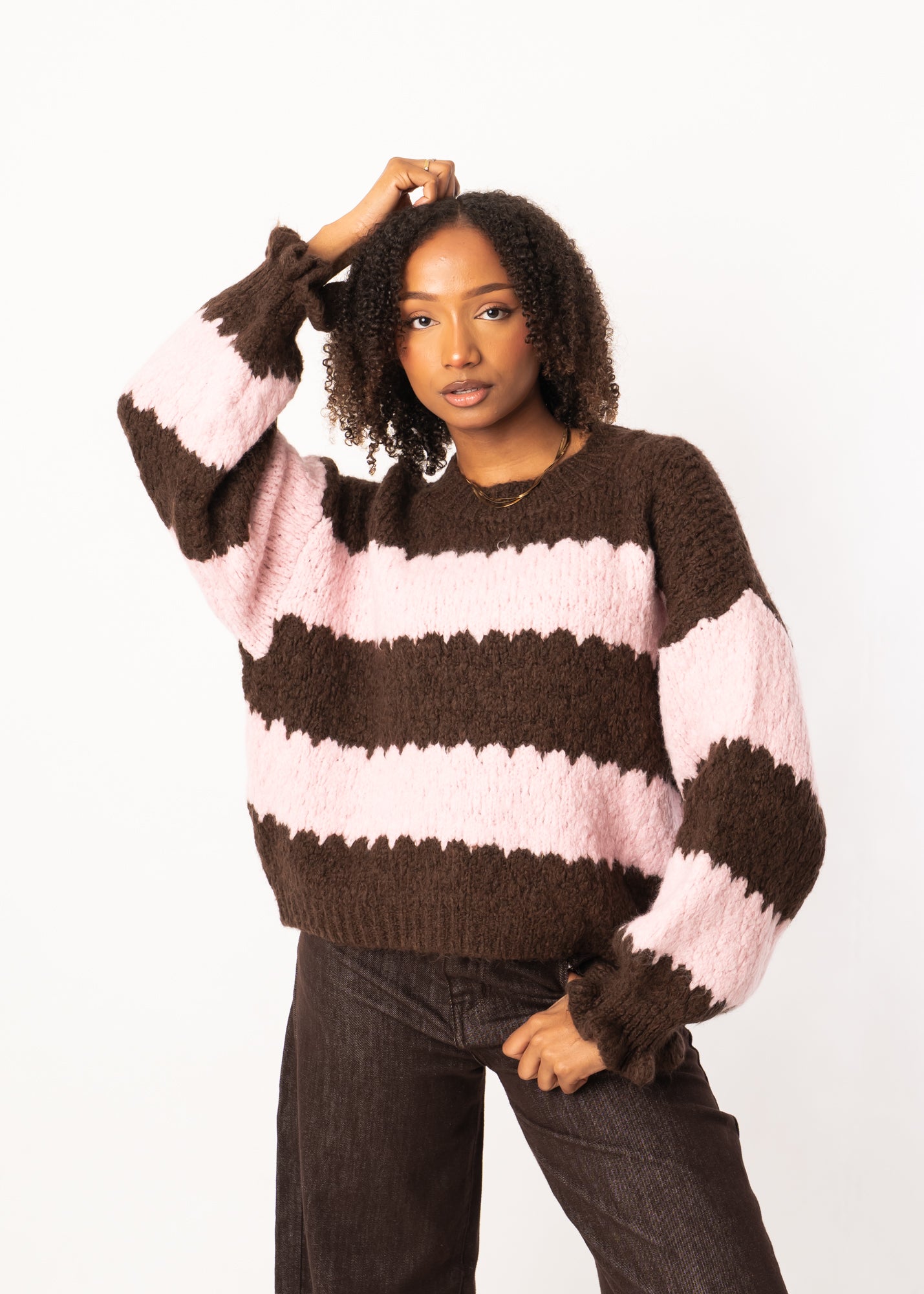 Dieser kuschelige Strickpullover bringt sofort ein Gefühl von Wärme und Leichtigkeit in deinen Alltag. Mit seinem lockeren Oversize-Fit und den weichen Streifen wirkt er entspannt und modern zugleich. Das Material ist angenehm weich, sorgt für Gemütlichkeit und hält dich zuverlässig warm. Perfekt für entspannte Stunden zu Hause oder als lässiger Hingucker im Alltag.