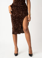 Ein Rock der bei jeder Bewegung schimmert und sofort Party Feeling aufkommen lässt. Der figurbetonte Schnitt mit elegantem Schlitz setzt deine Silhouette perfekt in Szene und wirkt gleichzeitig edel und selbstbewusst. Ideal für Silvester besondere Anlässe oder einen glamourösen Night Out Look.