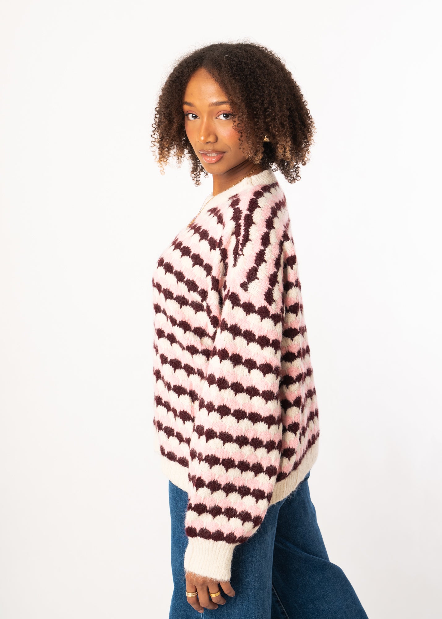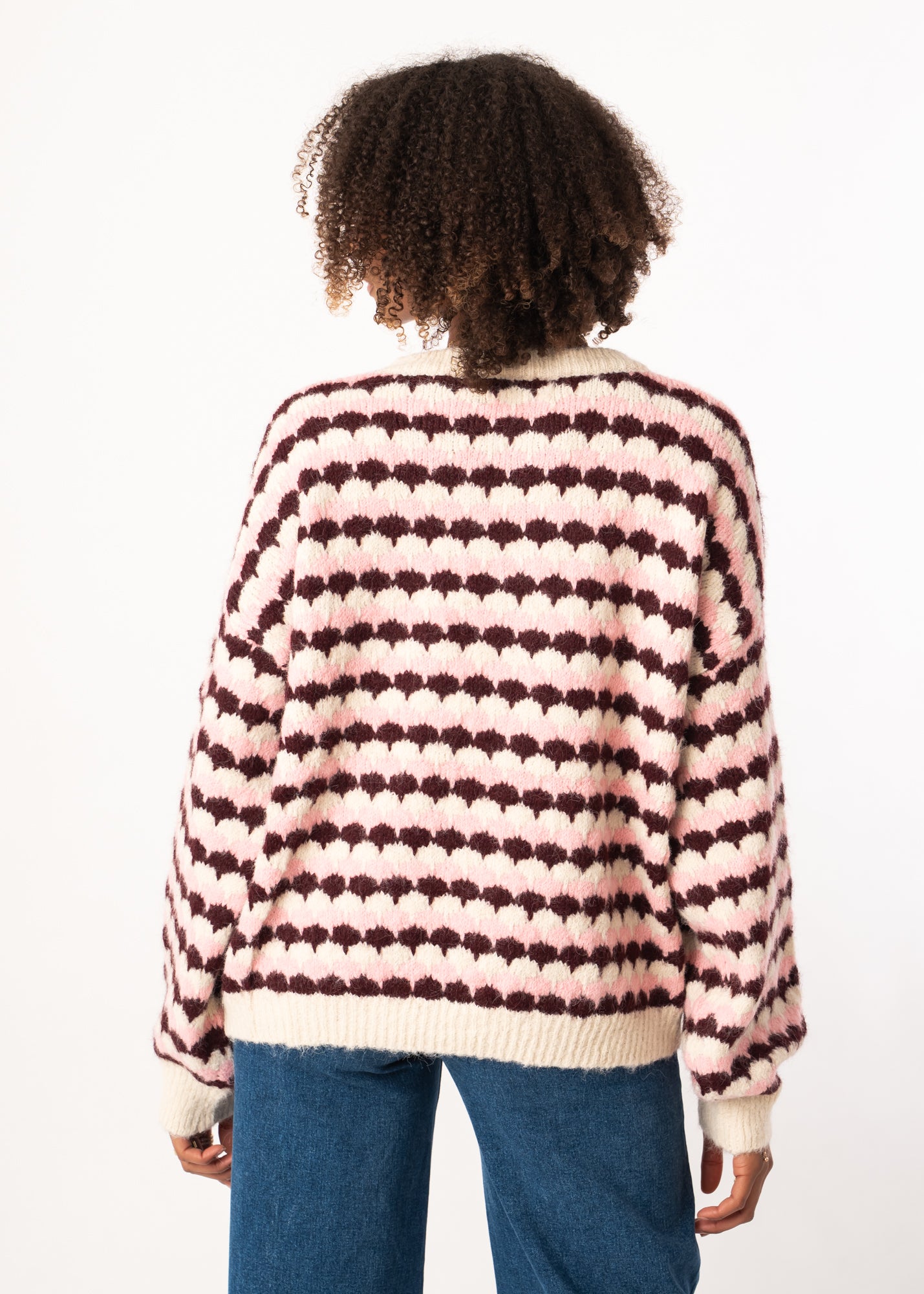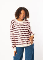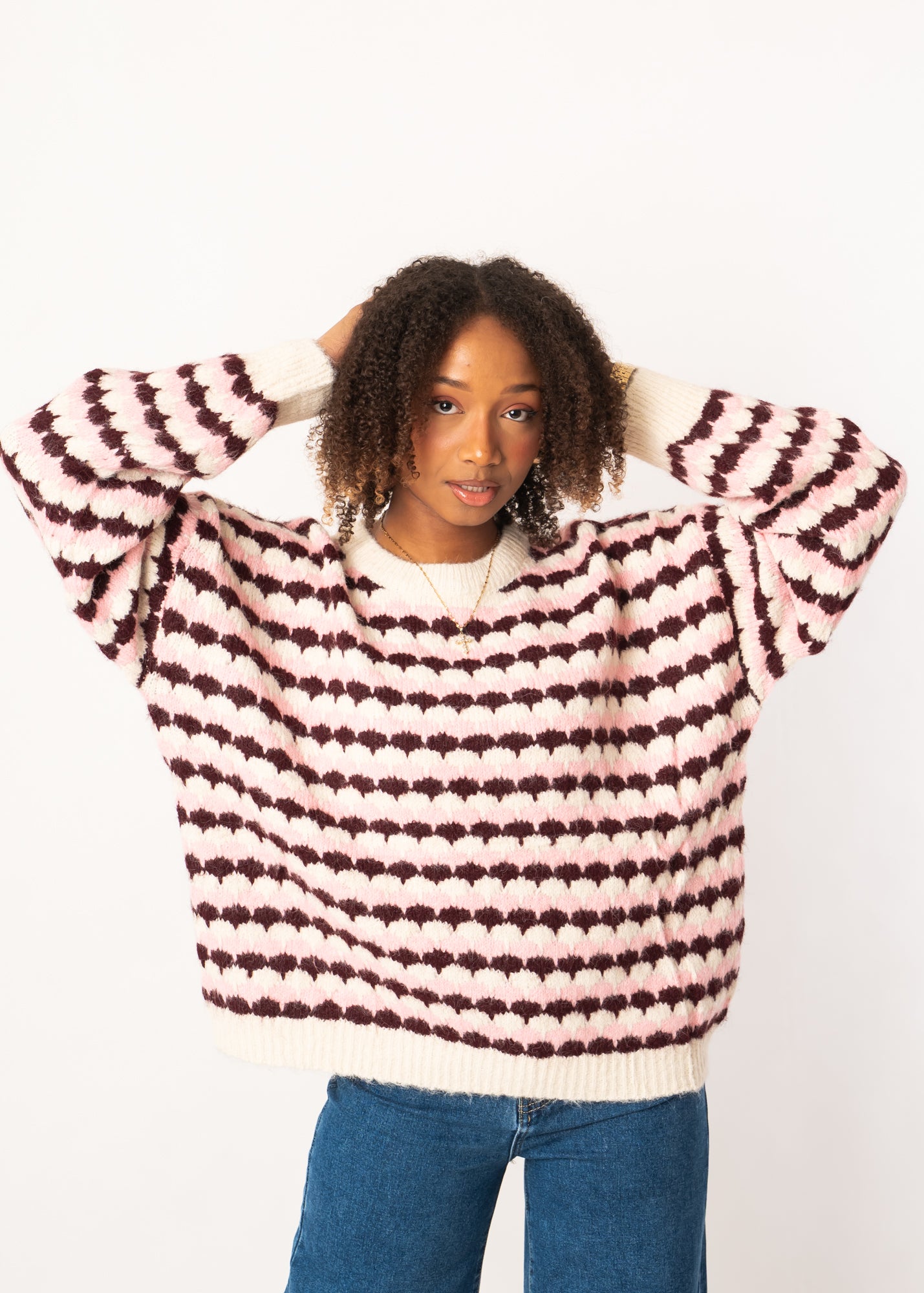 Der Wavy Sweater überzeugt mit seinem auffälligen Wellenmuster und dem weichen Strickmaterial, das sofort ein cozy Gefühl verleiht. Der lockere Schnitt sorgt für einen entspannten Sitz und macht ihn zum idealen Everyday-Piece – stylisch, warm und perfekt für die kühle Jahreszeit.