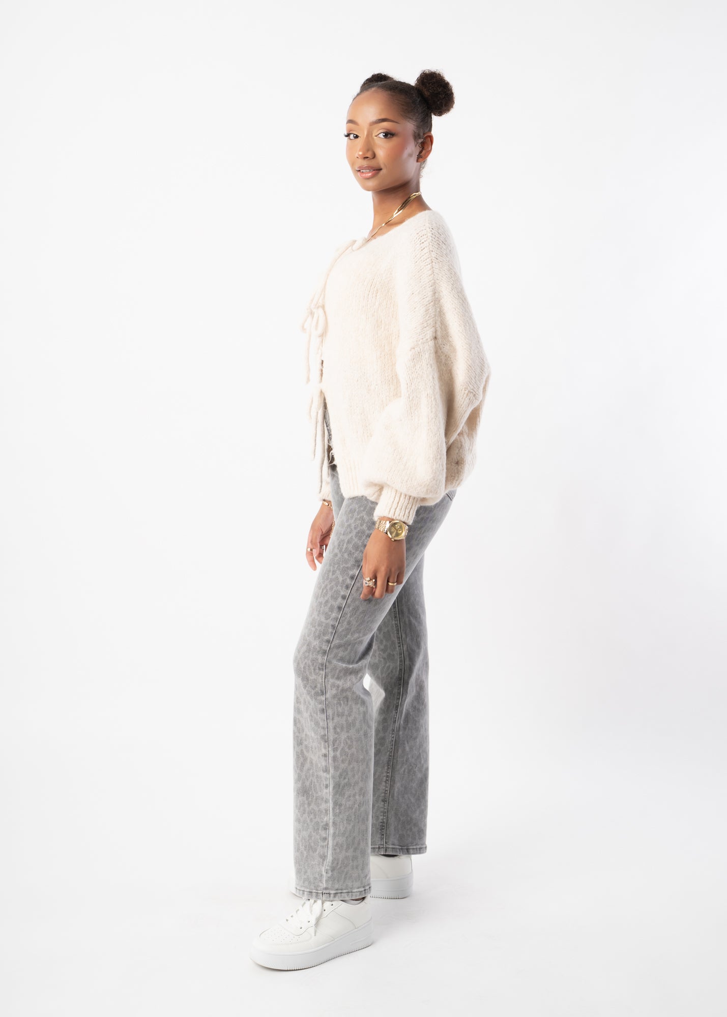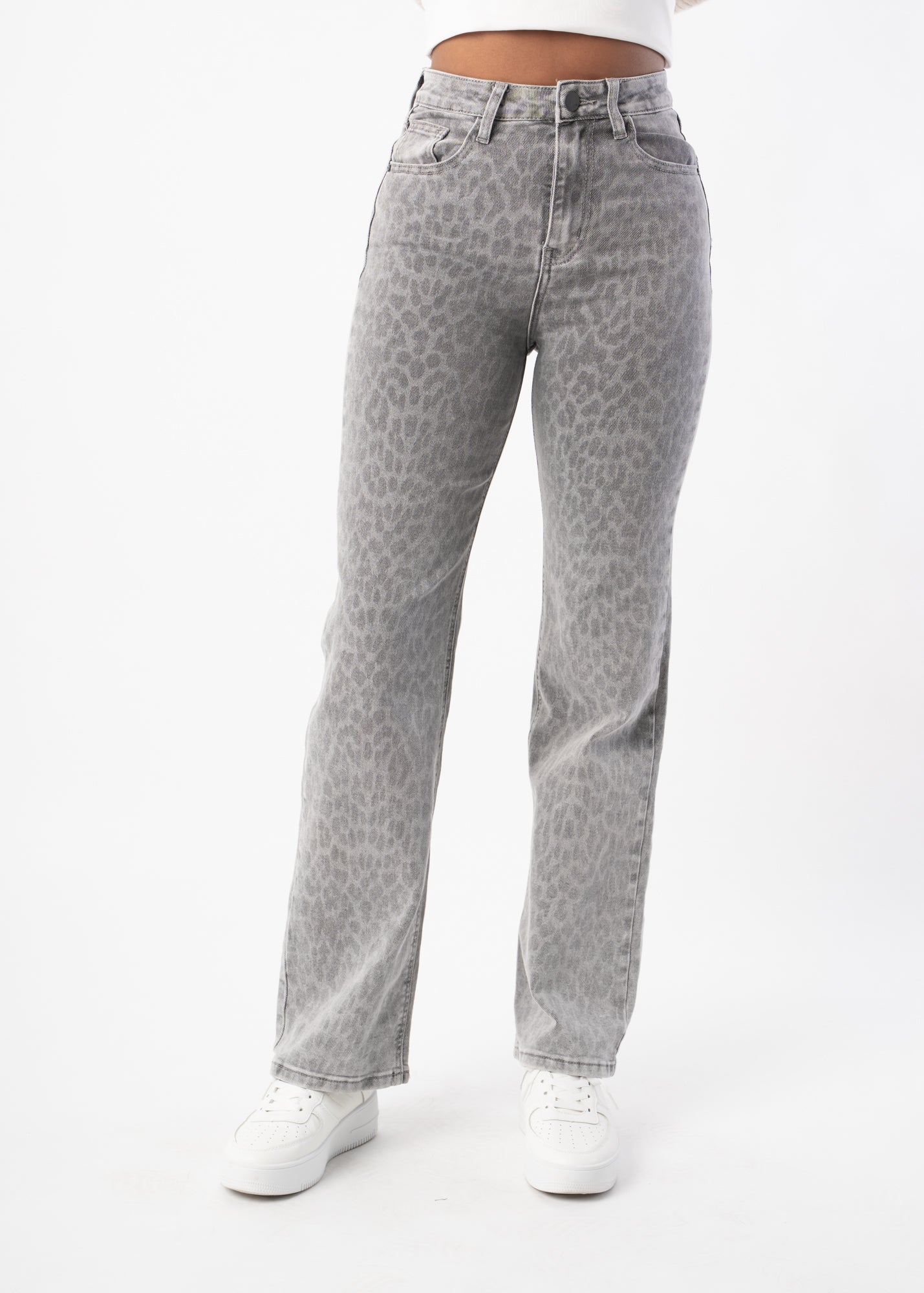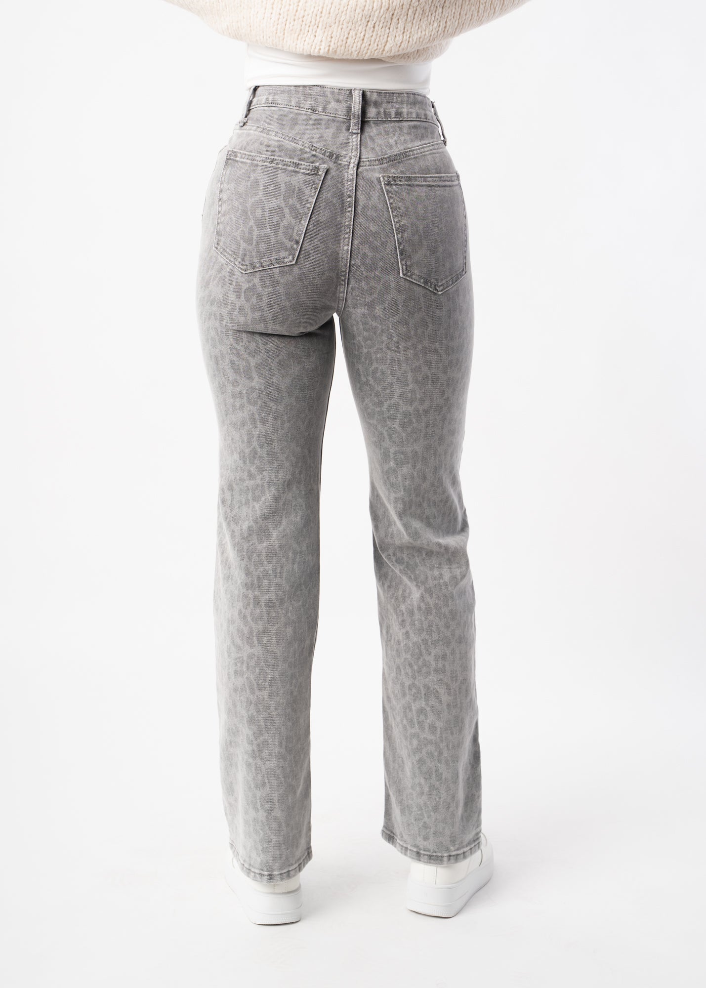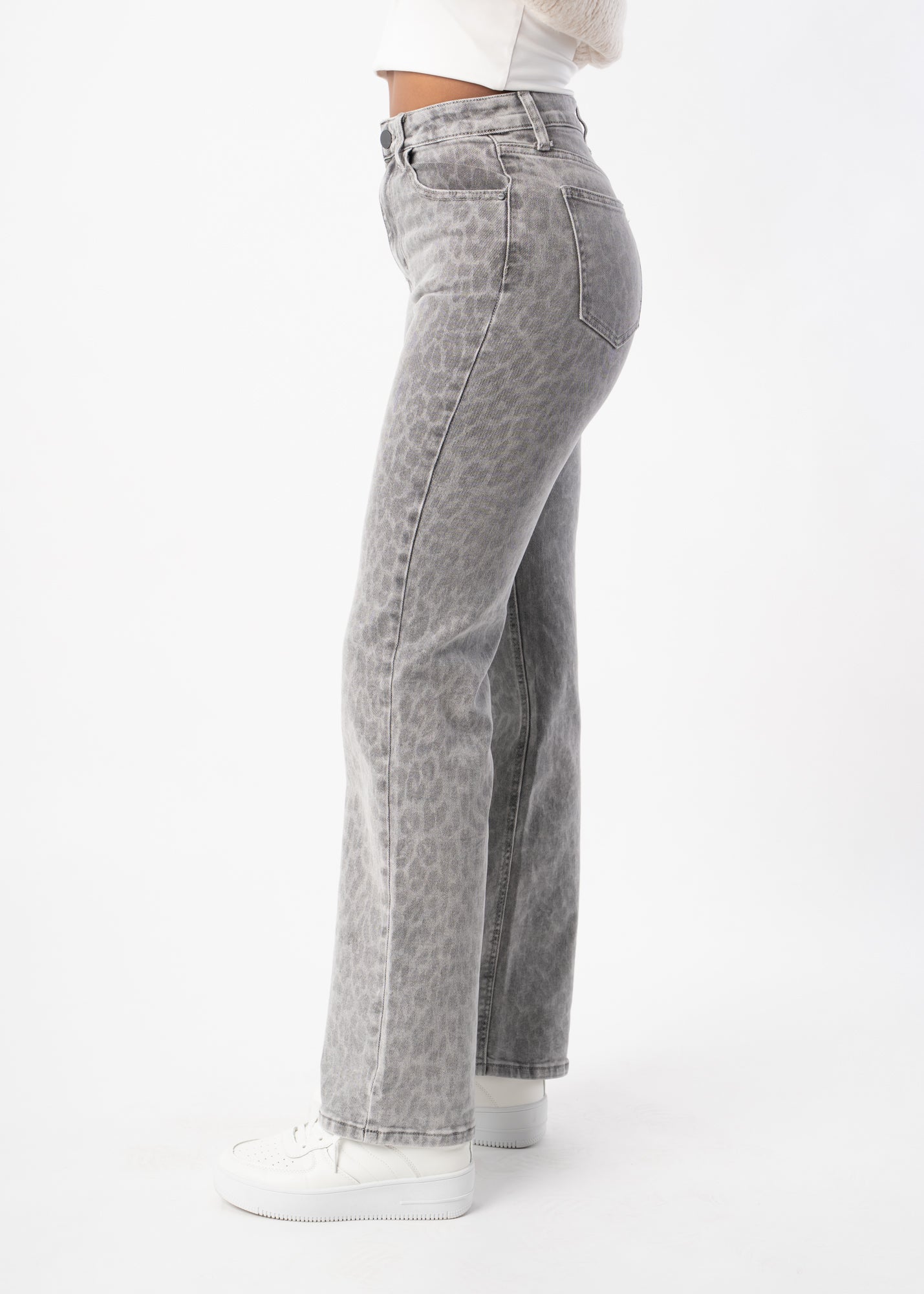 Diese Jeans verbindet einen geraden Schnitt mit einer weiten Passform und dezentem Leo-Muster. Sie sitzt bequem, wirkt modern und bringt ein stylisches Upgrade in deine Denim-Kollektion.