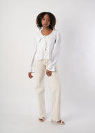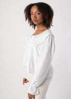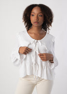 Geschnürte Rüschen Bluse - Weiß